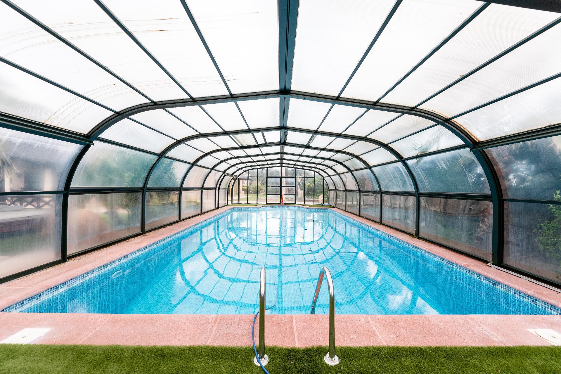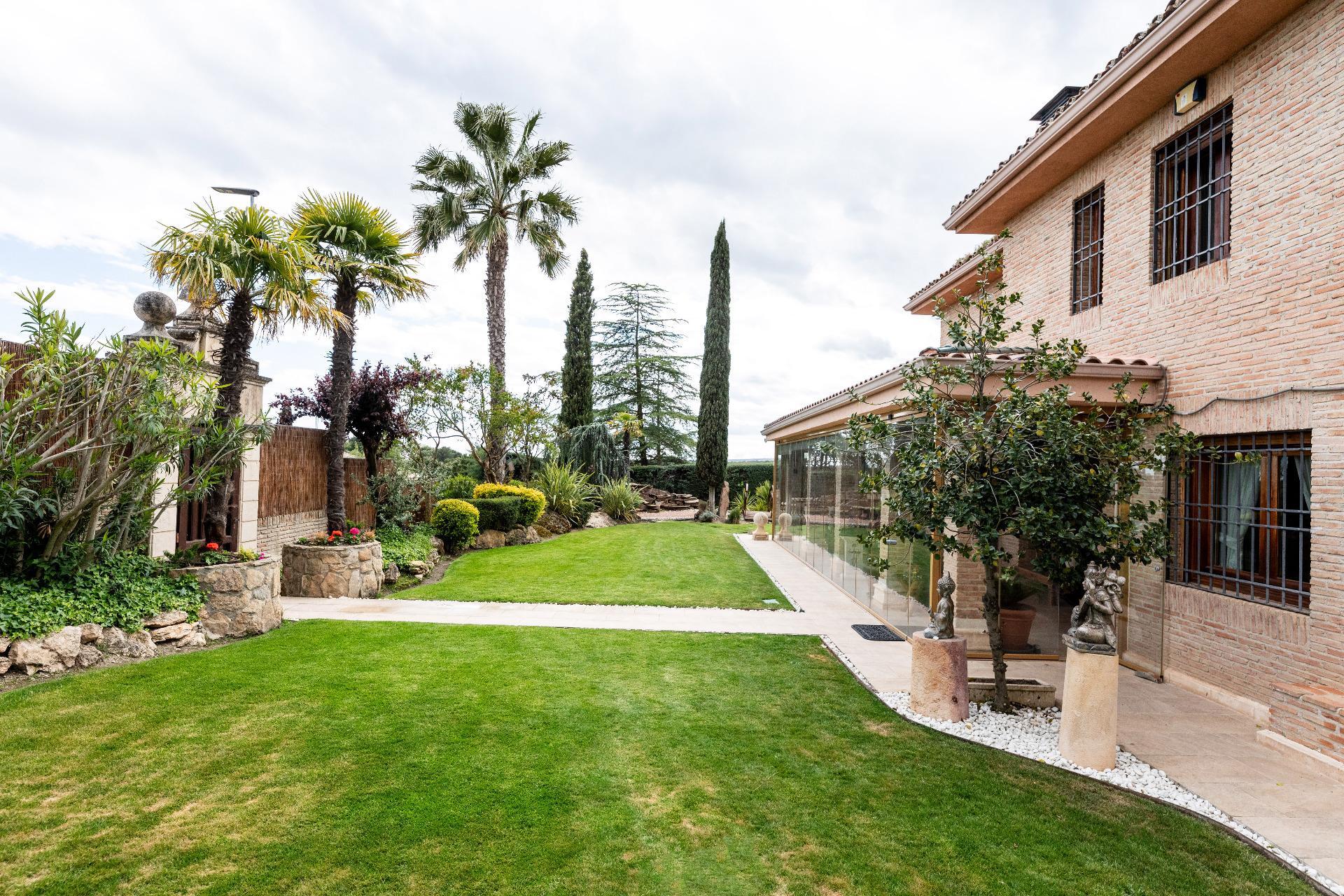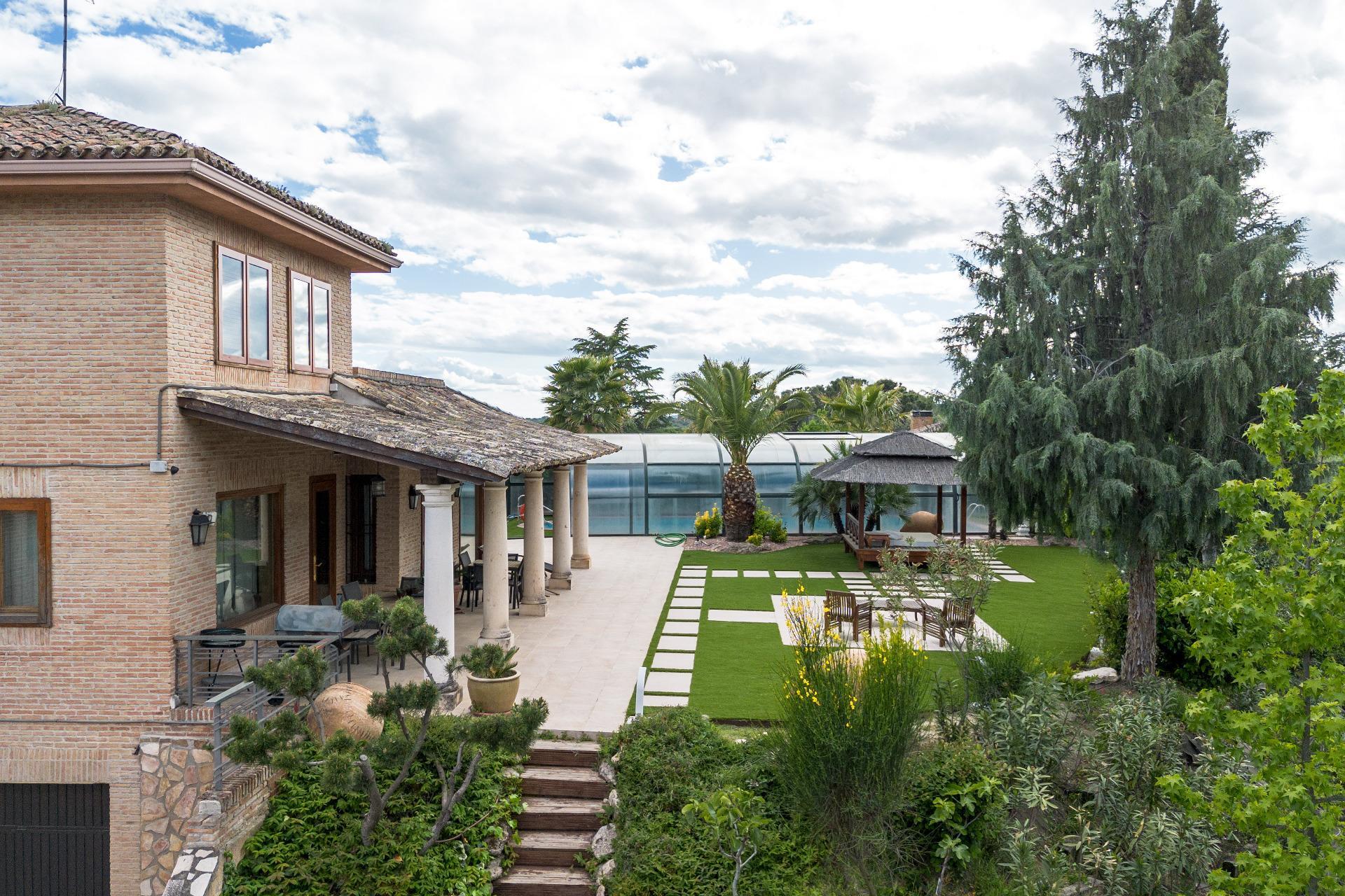 El exterior de la propiedad es un auténtico oasis. Un jardín amplio rodea la vivienda, con una pérgola cubierta ideal para reuniones y una piscina climatizada que permite disfrutar del baño durante todo el año. También dispone de una pista de pádel de alta calidad con iluminación artificial y varias zonas ajardinadas con frondosa vegetación.