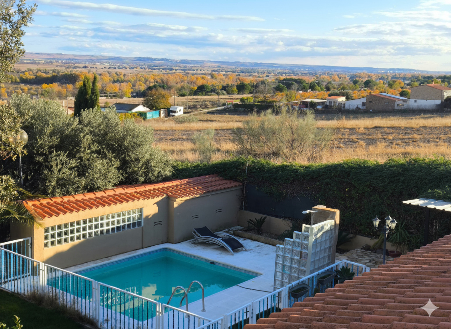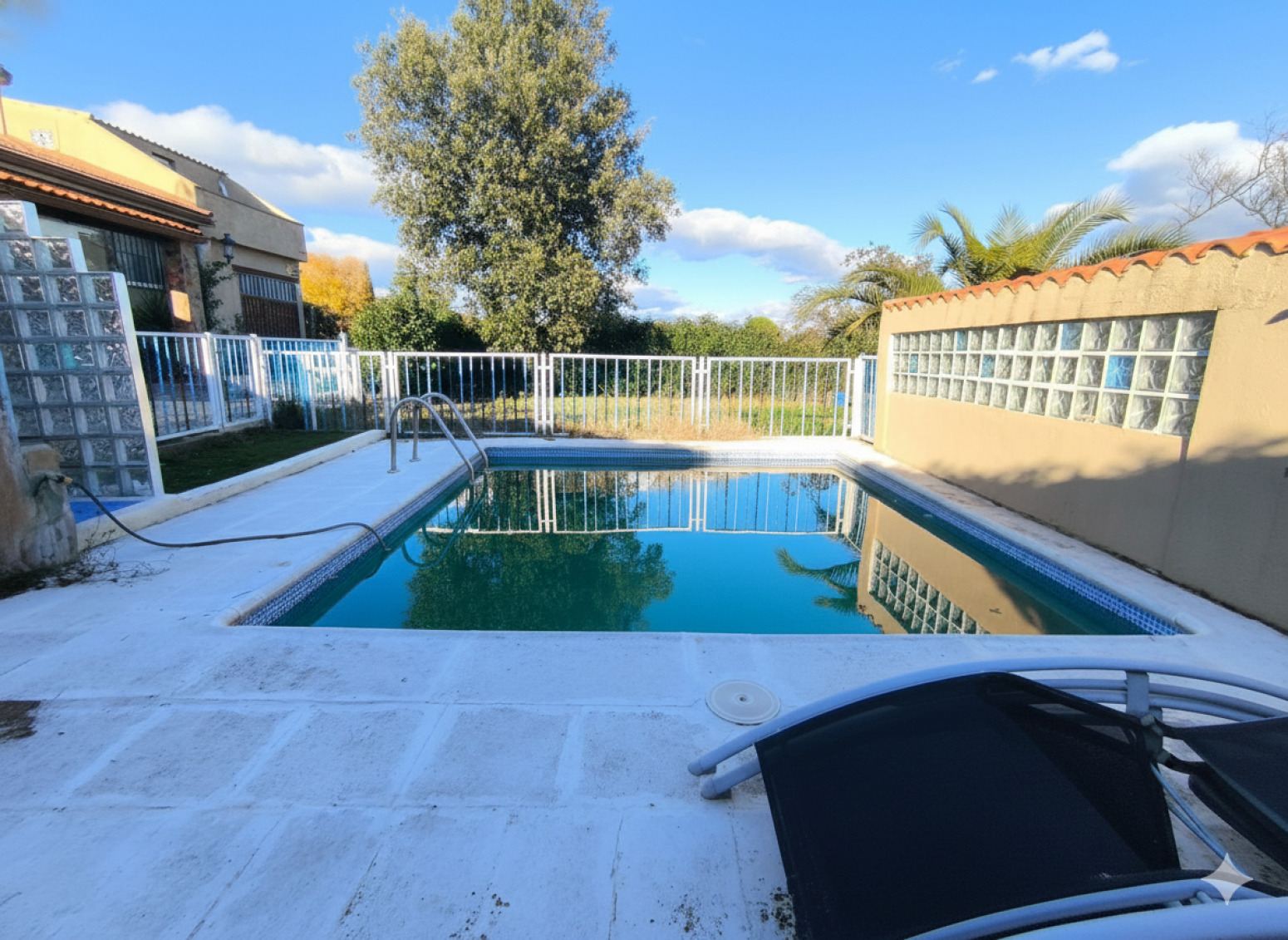 Vive en una zona rural a 25 minutos de Madrid. 4 dormitorios, 3 baños, un aseo, piscina, zona de barbacoa, jardín, frutales, perrera, gallinero y cuadra para dos caballos.