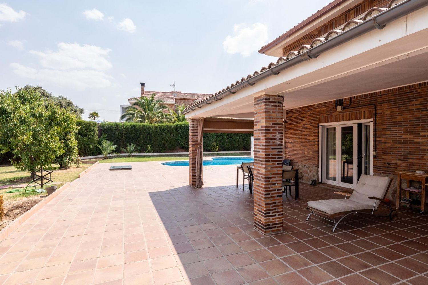 RE/MAX ACTION presenta Chalet independiente en Urbanización Montebatres, muy cerca de Arroyomolinos.~~Ubicada en la urbanización más cotizada de Batres, Montebatres, encontramos este chalet independiente en perfecto estado, construido con excelentes calidades y rodeado de naturaleza con excelentes vistas y un entorno silencioso y tranquilo.~Una vivienda pensada para disfrutar de la calma, la privacidad y la calidad de vida, sin renunciar al espacio y la comodidad en el interior.~~Características principales:~~Construcción robusta, cuidada, de alta calidad. ~Tres plantas, perfectamente distribuidas, y con estancias de gran amplitud y luminosidad.~Parcela de 1.500 m², con piscina privada y zona ajardinada con árboles frutales (cerezos, higueras, perales…), amplio huerto e invernadero con todo lo necesario para su cuidado.~Altas calidades. Ventanas climalit en perfecto estado, suelos de madera de teka de gran durabilidad, hidromasajes, chimenea, aire acondicionado. ~Posibilidades de habilitar buhardilla.~~Distribución:~~Planta principal:~Cocina luminosa, con salida al porche y al jardín.~Gran salón comedor con acceso al exterior.~Dormitorio principal con vestidor y baño en suite.~Una habitación adicional.~Baño completo con ducha hidromasaje.~~Planta superior:~Tres dormitorios muy amplios con armarios empotrados de gran almacenamiento.~Dos baños (uno en suite).~Salón espacioso fácilmente convertible en una o dos habitaciones.~~Planta inferior:~Gran salón de reuniones con chimenea.~Cocina auxiliar.~1 baño con lavadora y espacio para tender~Garaje cerrado con capacidad para 3 coches.~Sala de calderas y espacio de almacenamiento.~~Exterior:~Entrada con espacio para aparcar varios vehículos adicionales (2-3 coches).~Piscina con zona ajardinada y ducha solar.~Árboles frutales (cerezos, higueras y perales) y huerto propio.~Invernadero equipado para cultivo.~Construcción auxiliar para herramientas, maquinaria de jardinería y zona y gran mesa de trabajo.~Gran porche cubierto, ideal para disfrutar todo el año y perfecto para reuniones y celebraciones.~Barbacoa de obra bajo construcción auxiliar con cocina.~