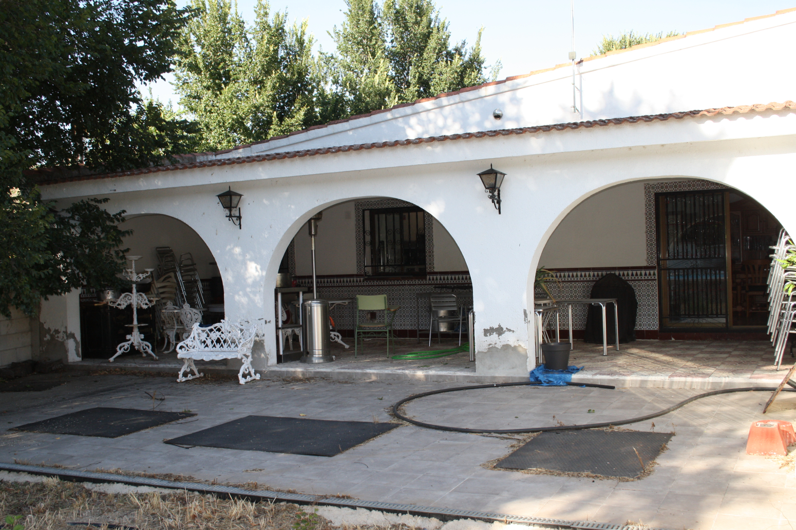 Un complejo hostelero junto al río Tajuña compuesto por una zona de aparcamientos, zona de jardines, 4 salones para eventos con sus respectivos baños, 2 barras de bar y 2 cocinas completamente equipadas que incluyen un espectacular horno, una gran parrilla para asar, una cámara frigorífica y almacén.