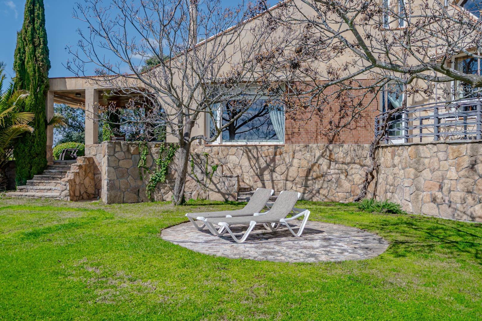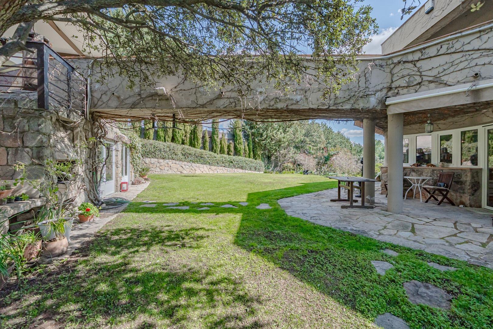 La propiedad ofrece múltiples zonas exteriores: piscina, jacuzzi, jardín consolidado, huerto, gallinero, pozo de gran caudal (15.000 litros/hora), lavadero y sala de máquinas independiente. Además, bajo la zona de aparcamiento se ha habilitado una construcción auxiliar con sala multiusos y zona de almacenaje.