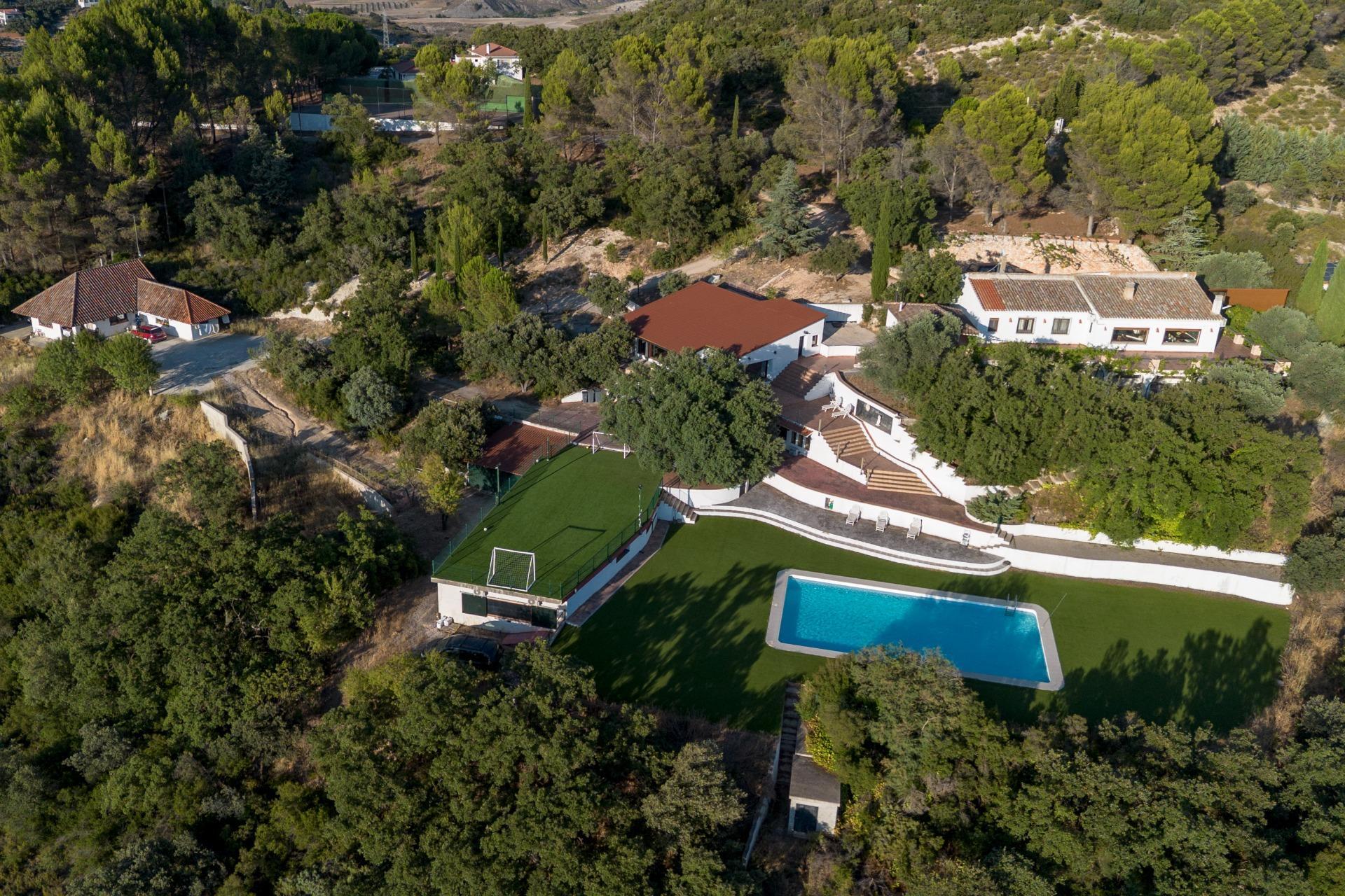 – Vivienda principal: un espacio de lujo distribuido en varias plantas, muy espaciosos todas las estancias, con varios salones con chimeneas y TV con proyector y pantallas retractiles, total de 10 dormitorios, 4 baños, dos cocinas, piscina, gimnasio con sauna y jacuzzi, vivienda de guardeses y más, diseñado para satisfacer las necesidades de los más exigentes.