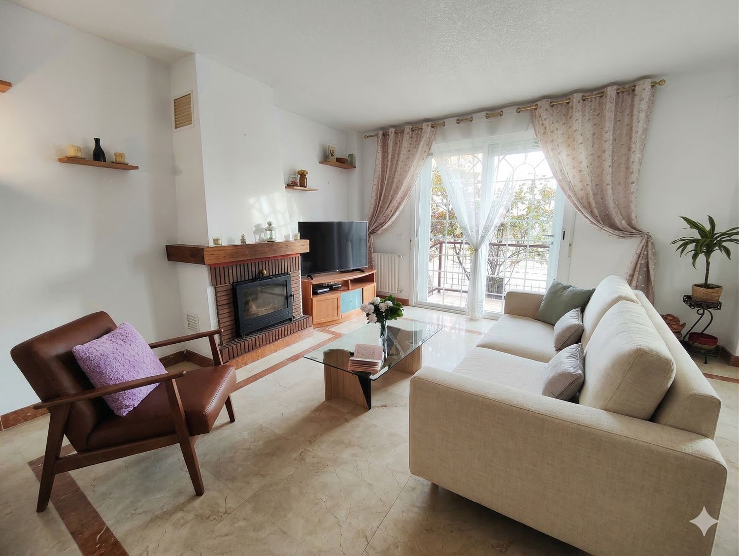 En cuanto a calidades, la vivienda dispone de suelo de mármol en planta baja y escaleras, gres en el resto de estancias, puertas de madera, ventanas de aluminio con rejas y calefacción individual de gas natural. El salón cuenta con una acogedora chimenea que aporta calidez y encanto.