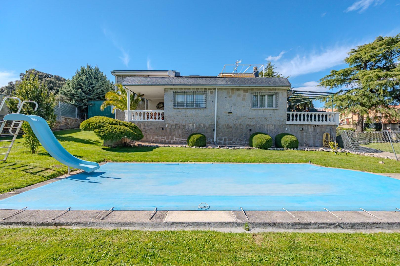 Presentamos este exclusivo chalet independiente ubicado en la prestigiosa zona de El Escorial, una propiedad de grandes dimensiones con un diseño único, distribuido en tres plantas y con un hermoso jardín que incluye piscina y una parcela perfectamente perimetrada con muro de piedra.