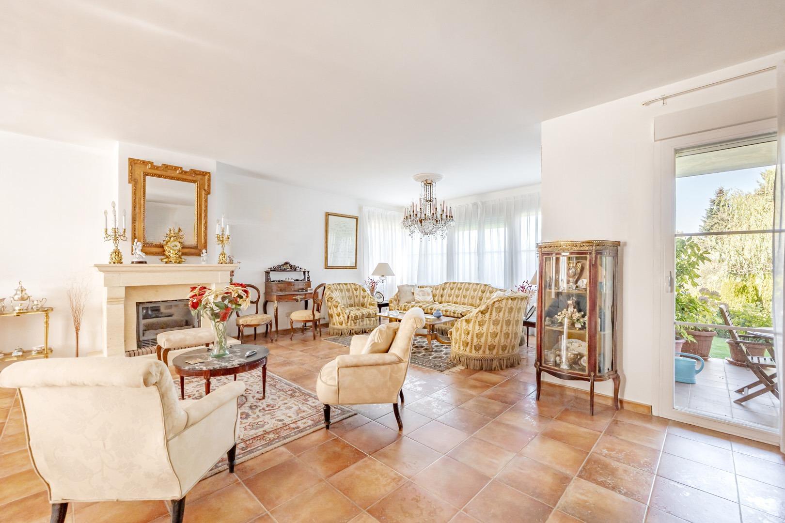 Al jardín se accede desde el salón o la cocina a través de un bonito porche que comunica la casa con la zona de césped y arboleda.
