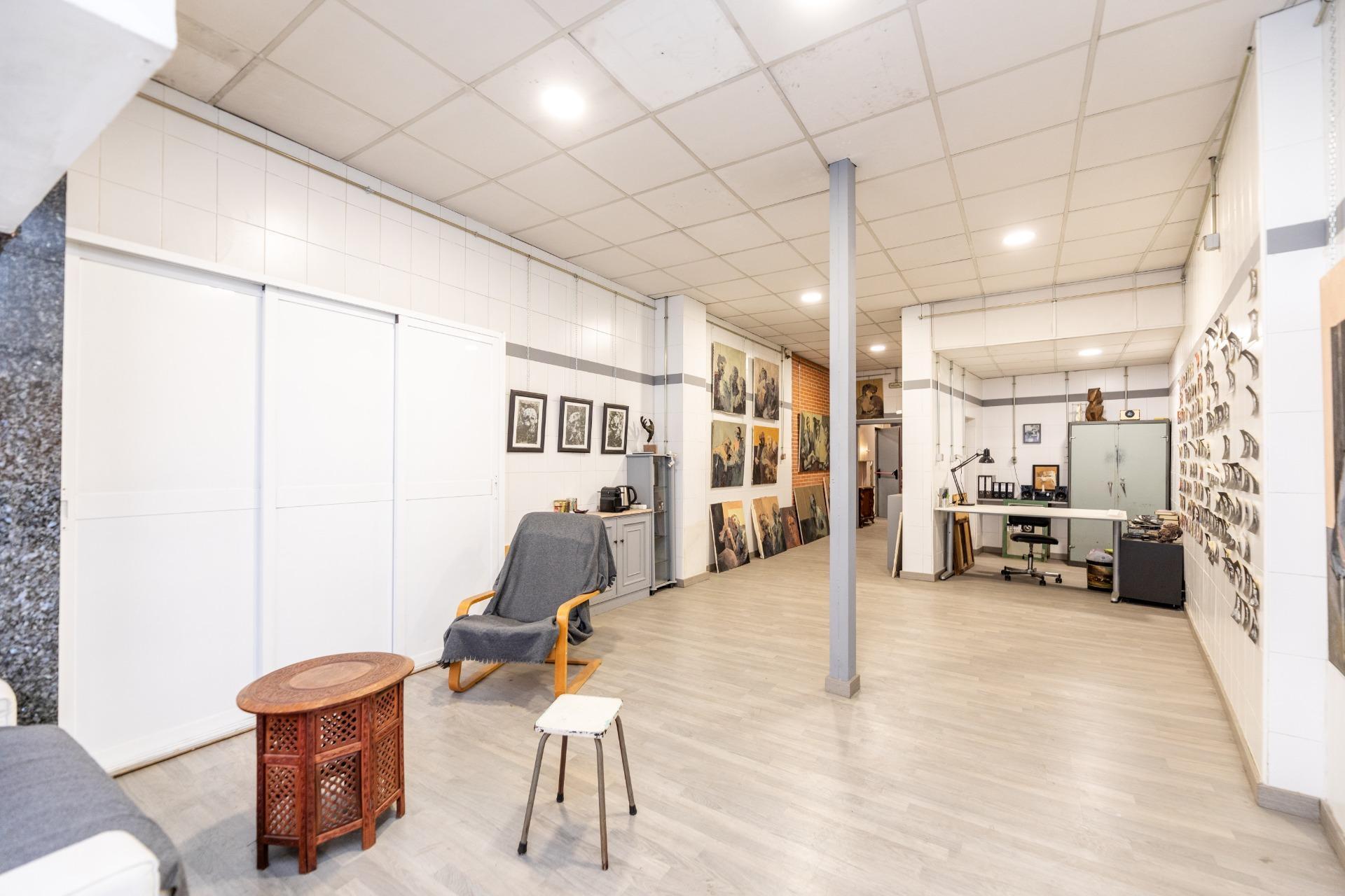 Estupendo local comercial de 146 m², que fue un antiguo obrador con restaurante, de ahí que conserve la instalación de salida de humos y unas escaleras al fondo del local que subían a los distintos salones, hoy solo se mantienen las escaleras disponiendo de un hueco de gran altura para poder adaptarlo a la necesidad de cada actividad. Actualmente el local, funciona como sala de exposiciones y taller de arte.