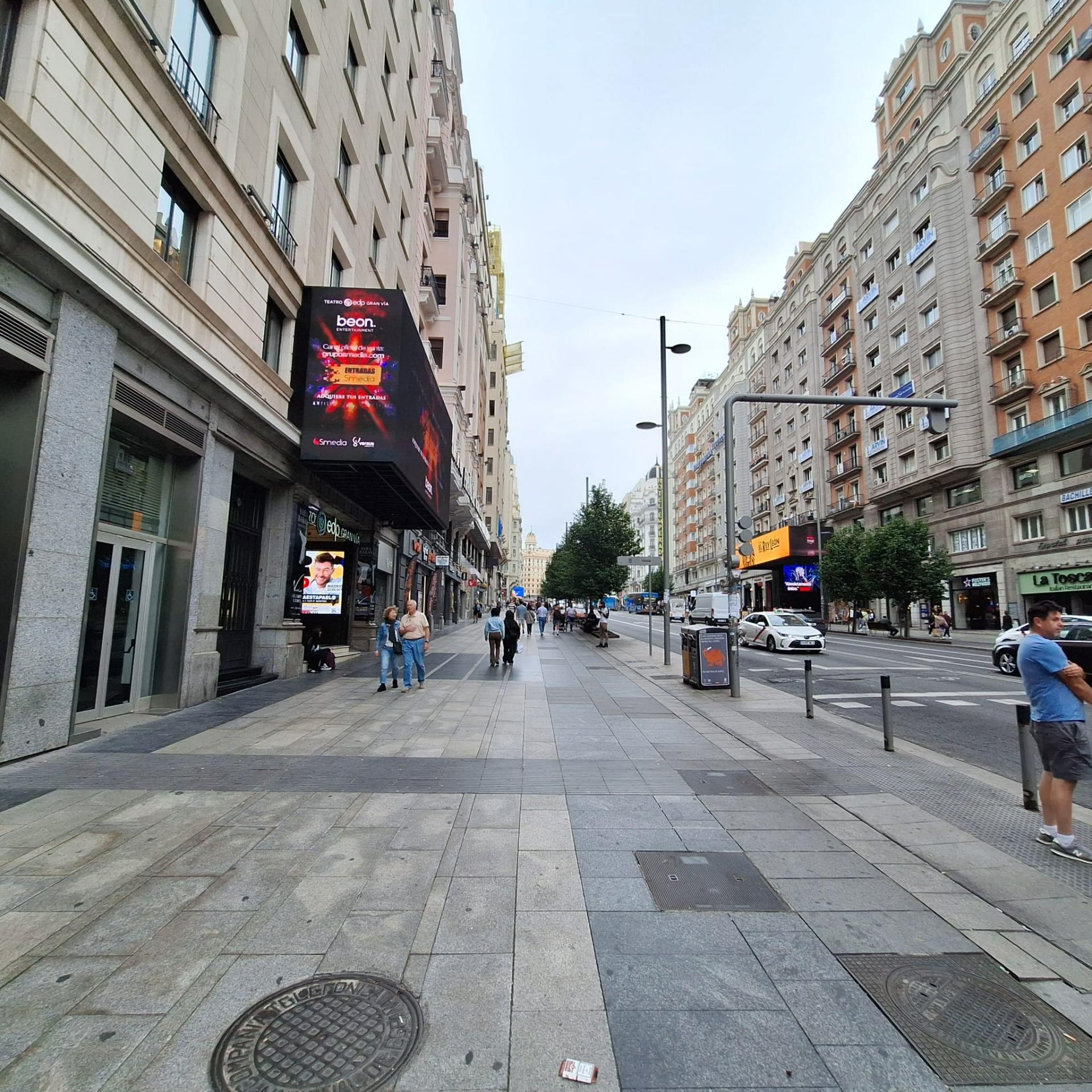 Se encuentra a 30 metros de la Gran Vía de Madrid y cuenta con unos alrededores repletos de actividad diaria. Por supuesto, es una zona con mucho paso. Excelente comunicación con todas la vías de transporte, desde autobuses, hasta líneas de Metro de Madrid.