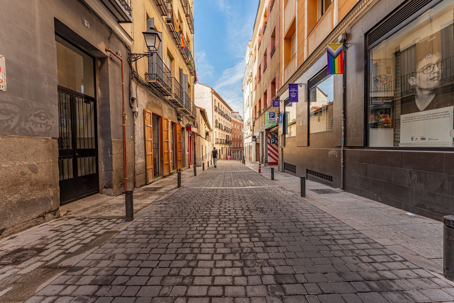 Fernando y en el barrio de Lavapiés, rodeado de tiendas comerciales y calles con