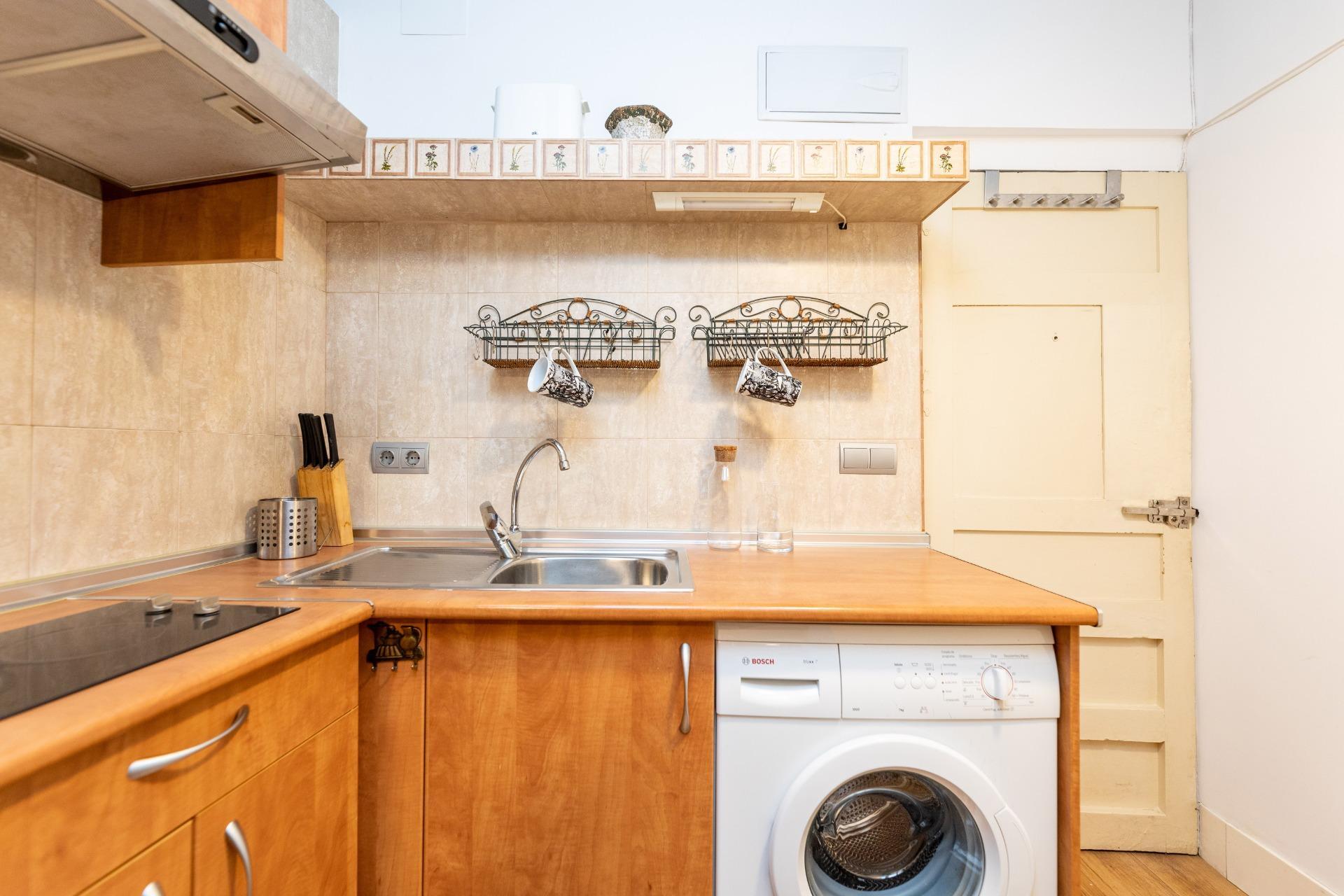 La vivienda cuenta con cocina, cuarto de baño y habitación. La cocina tiene lavadora, vitrocerámica, campana extractora, microondas y nevera. También utensilios de cocina y menaje. El baño es completo con plato de ducha y extractor eléctrico para la ventilación. En la habitación hay una ventana de doble hoja con contraventanas de maderas y un tragaluz. Además, hay dos armarios -uno de ellos, empotrado-, una cama doble con almacenamiento debajo, un mueble estantería, mesa abatible con sillas y un pequeño televisor.