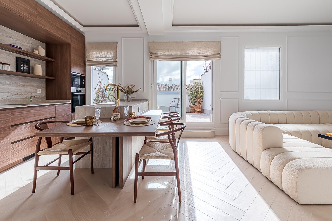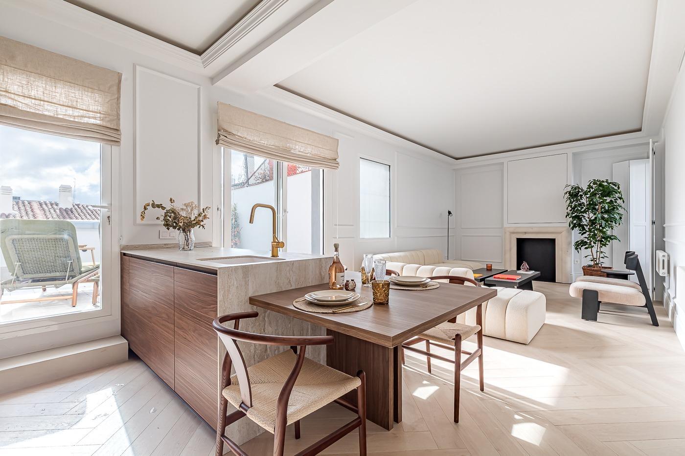 La gran protagonista es su terraza de 20 m², un auténtico privilegio en esta zona: vistas despejadas, sensación de amplitud y un espacio perfecto para desayunos al sol, cenas tranquilas o simplemente desconectar en pleno corazón de la ciudad. Una extensión natural del salón que eleva la experiencia de vivir Madrid.