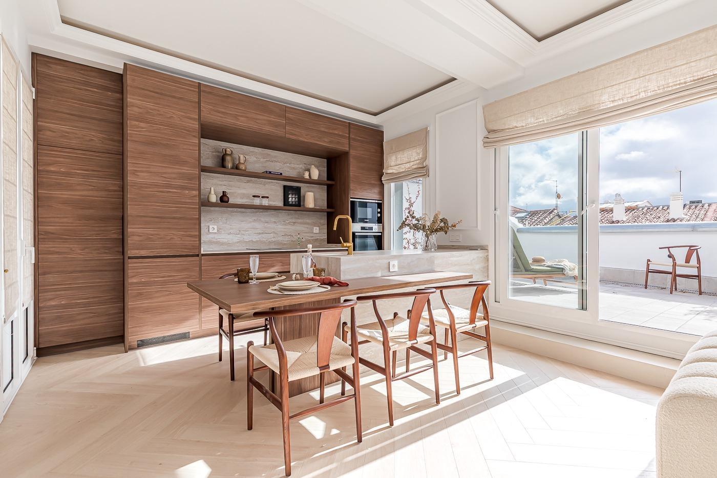 Espectacular y exclusivo ático de dos dormitorios y tres baños en el barrio de Cortes.