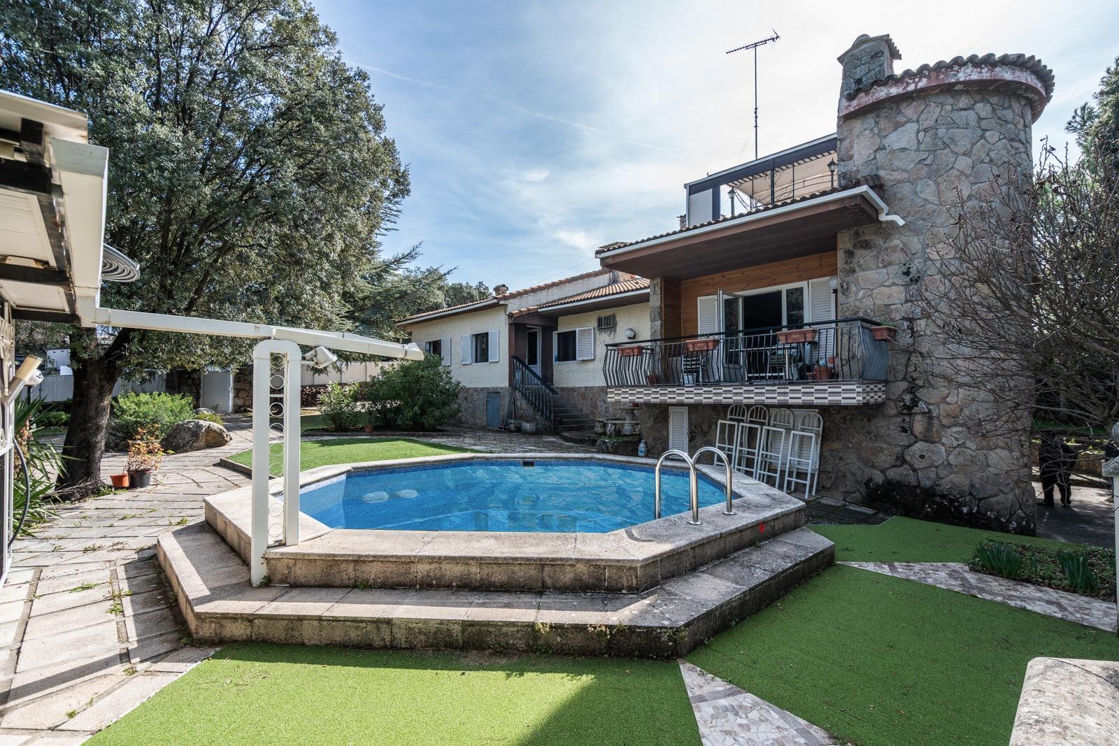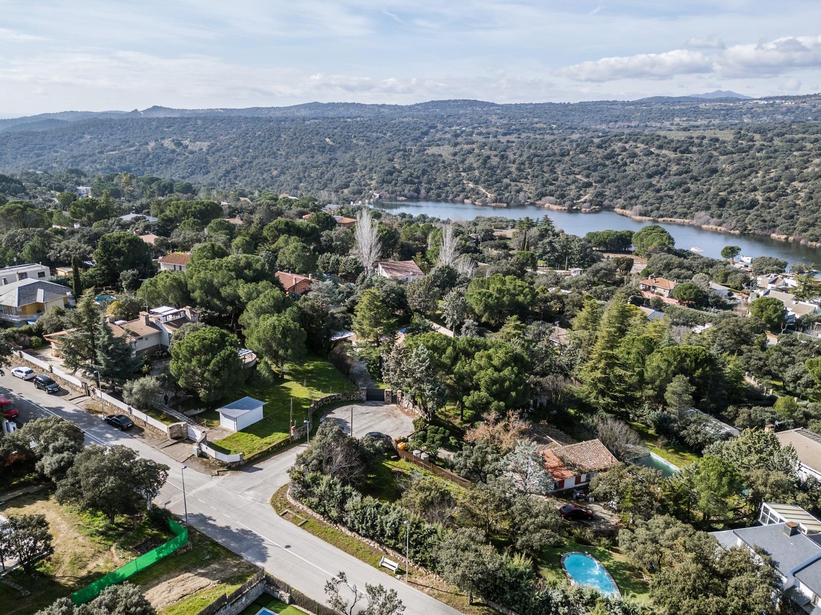 Este chalet individual se encuentra en un entorno privilegiado, rodeado de naturaleza y con una parcela segregable de 2.100 metros cuadrados que ofrece privacidad y amplitud. La vivienda, de una sola planta, cuenta con seis habitaciones, un salón espacioso con estufa de leña, cinco baños y dos tragaluces que llenan el espacio de luz natural. Sus tres terrazas ofrecen vistas impresionantes y en la cubierta se encuentra un gran solárium, perfecto para relajarse y disfrutar del paisaje. En la planta baja, además de la zona de almacenamiento, hay un dormitorio independiente con baño propio y acceso directo desde el garaje, ideal para invitados o para disponer de un espacio privado adicional.