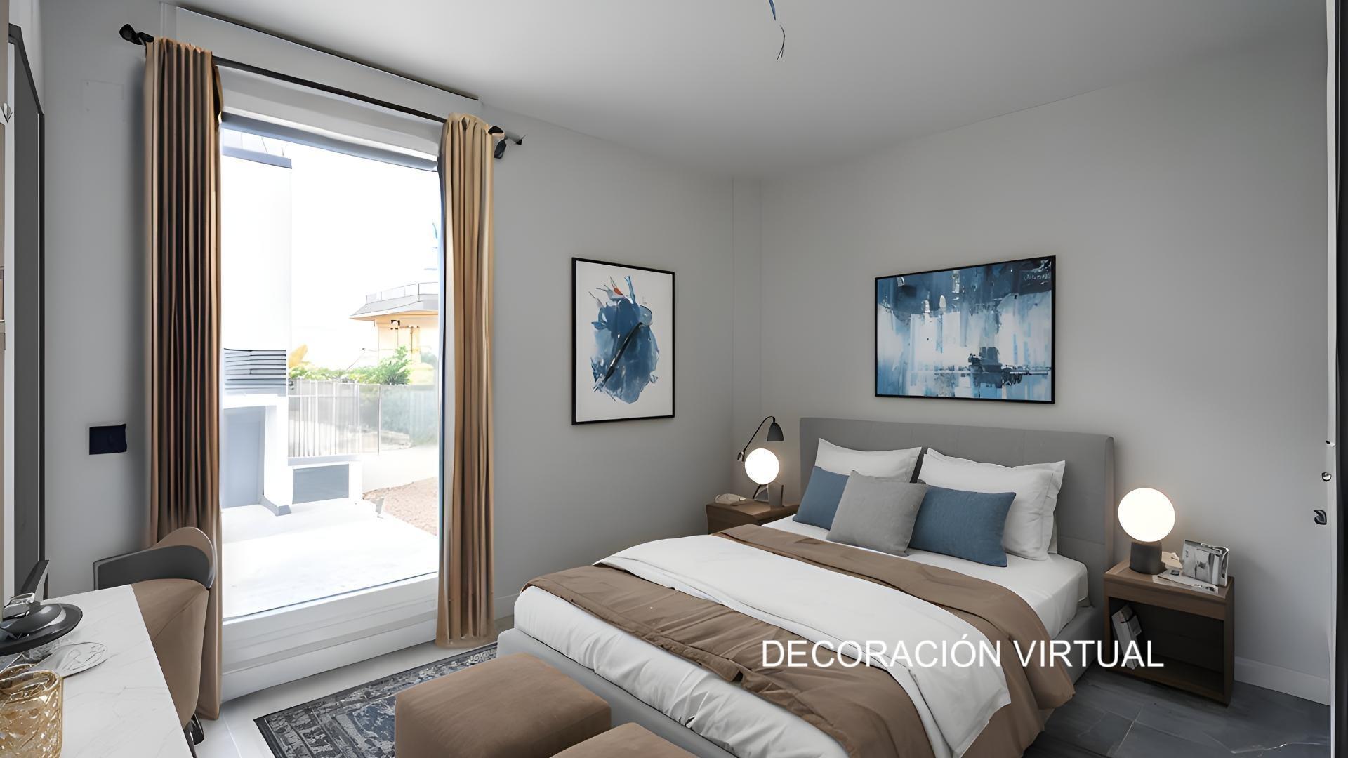 En la primera planta, los tres dormitorios se presentan como espacios amplios y llenos de luz natural, gracias a sus grandes ventanales. El dormitorio principal es una suite con baño privado con plato de ducha y vestidor, brindando un toque de exclusividad y confort. Los otros dos dormitorios, igualmente luminosos, comparten un baño completo, ideal para una familia.