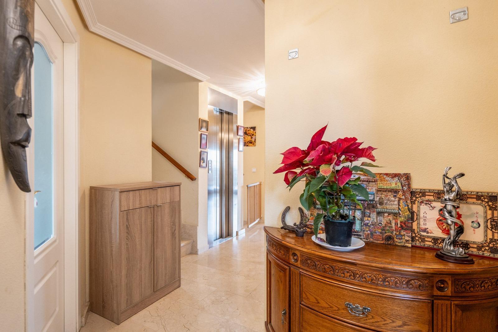 Uno de los puntos fuertes del chalet es que cuenta con ascensor que cubre todas las plantas, garantizando la mayor comodidad posible. También incluye videoportero y sistema de vigilancia, calefacción por radiadores y gas natural, así como aire acondicionado tipo Split en el salón principal y en todos los dormitorios. Además, dispone de armarios empotrados en todas las habitaciones, optimizando el espacio de almacenamiento.