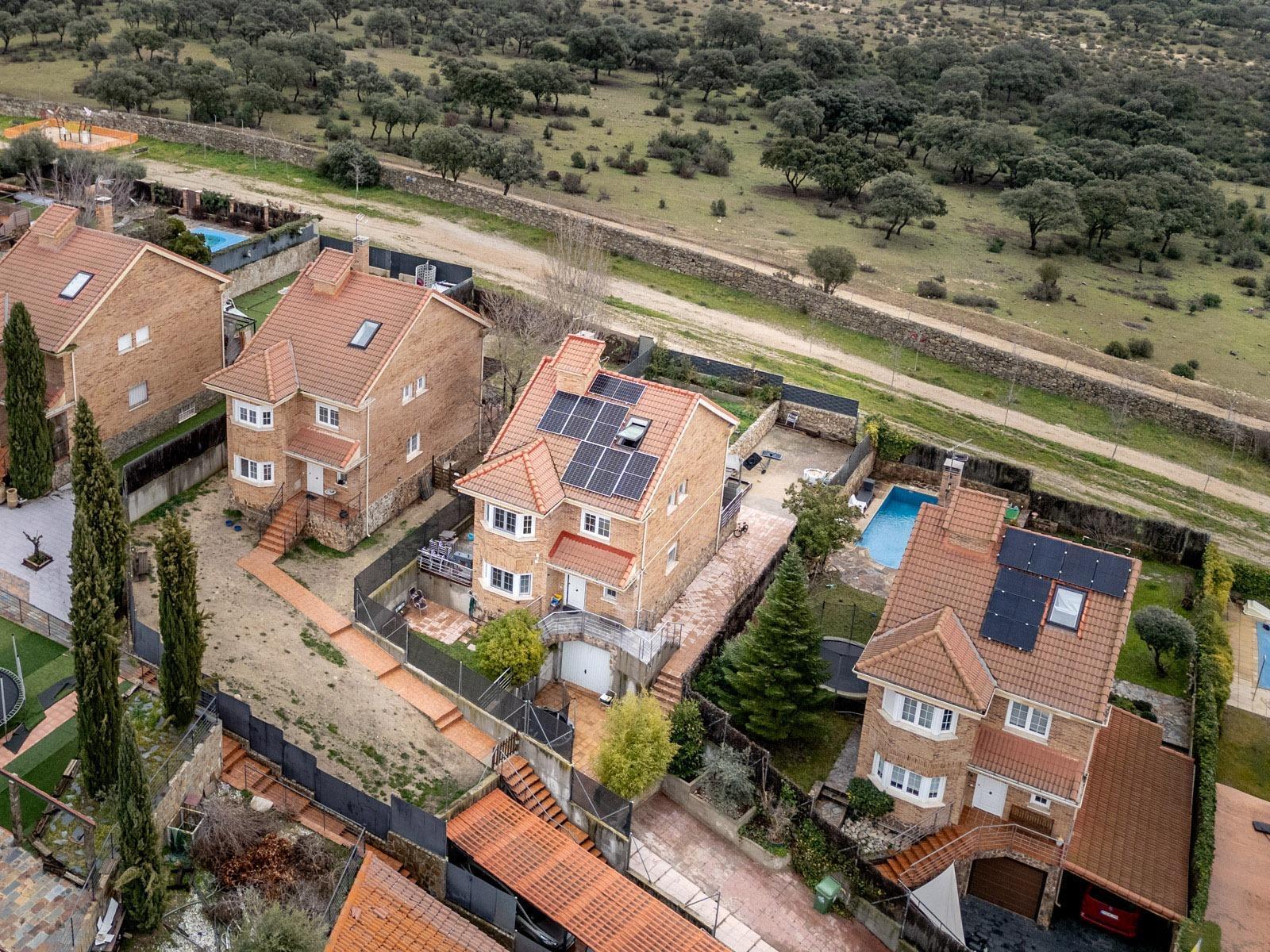 El exterior de la vivienda está diseñado para el disfrute, con un amplio jardín con zona de barbacoa y acceso directo al Monte del Pardo, proporcionando un entorno natural y exclusivo. La vivienda dispone además de garaje con capacidad para un coche.