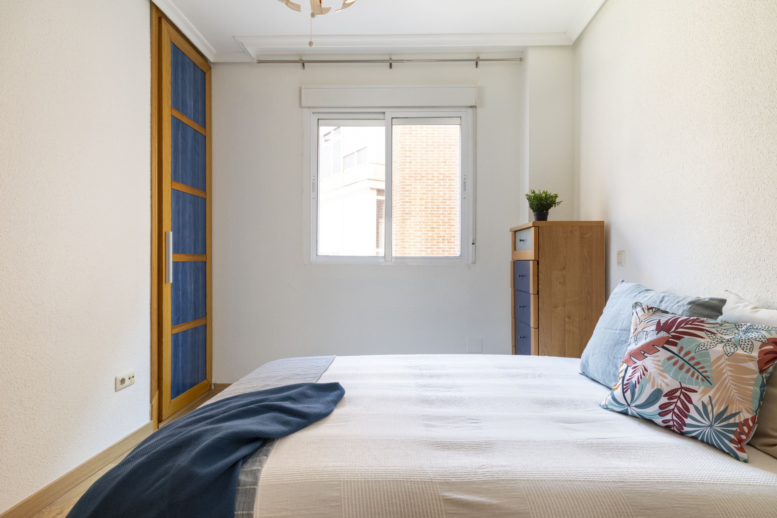 El piso se alquila sin muebles, sólo en la cocina, tiene aire acondicionado con bomba de frío/calor y hay opción de alquilar una plaza de garaje para coche grande, de fácil maniobra en un parking de la zona.