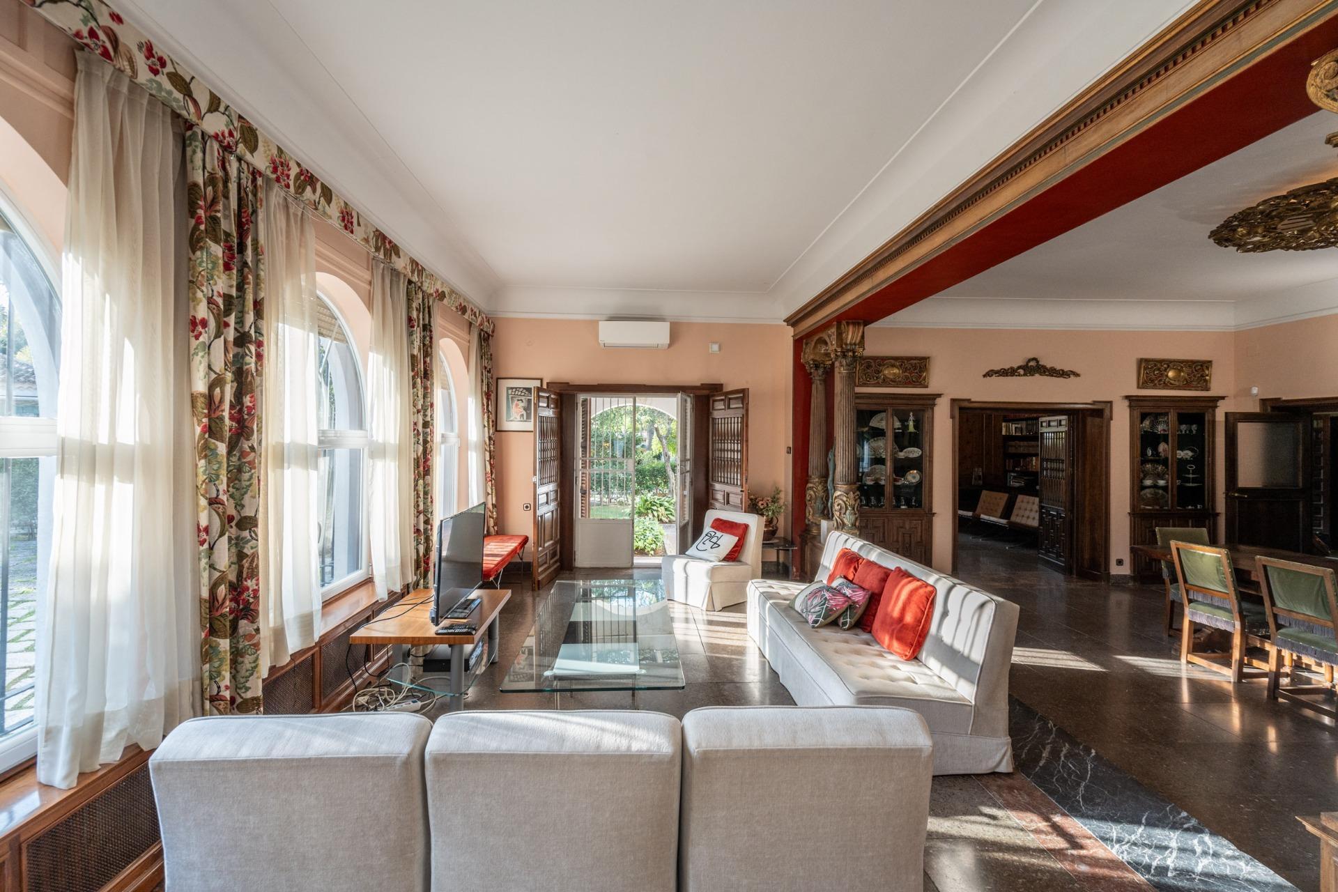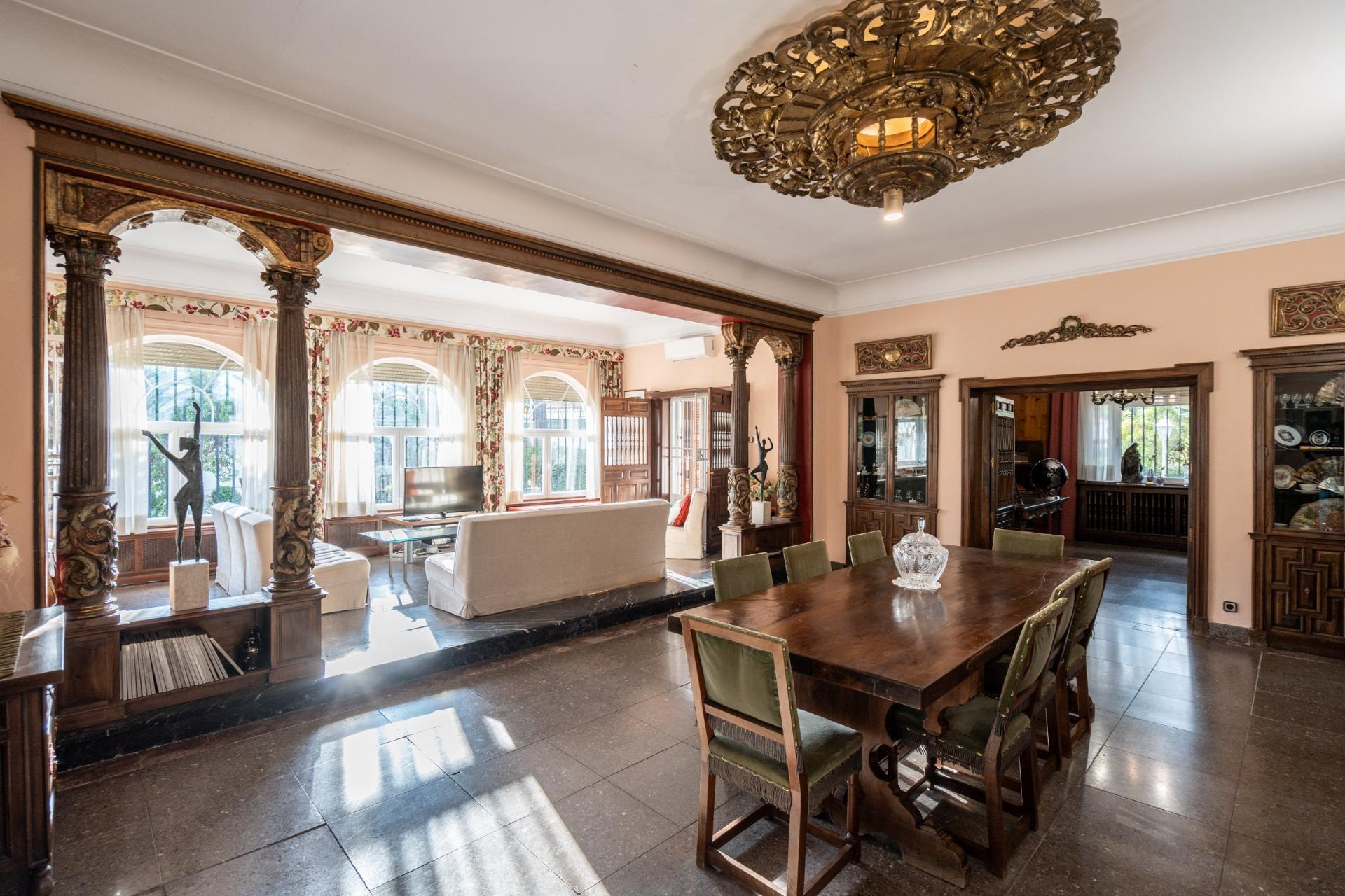 La casa principal, que es el corazón del señorío, destaca por sus más de 460 m² de elegancia y estilo clásico. El salón comedor de doble altura es una auténtica obra maestra, con una majestuosa chimenea que se convierte en el centro de las reuniones familiares, acompañado de grandes ventanales con arcos que permiten vistas ininterrumpidas al espléndido jardín. Este espacio bañado por la luz natural es ideal para disfrutar de largas tardes de confort y calidez.