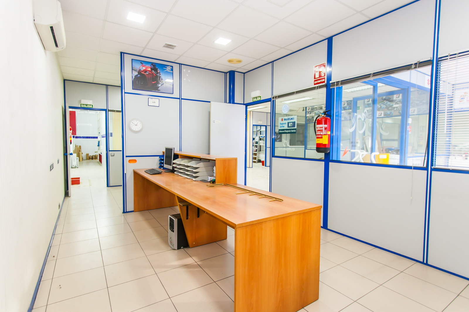 Actualmente está equipado como tienda y taller mecánico. Dispone de:
