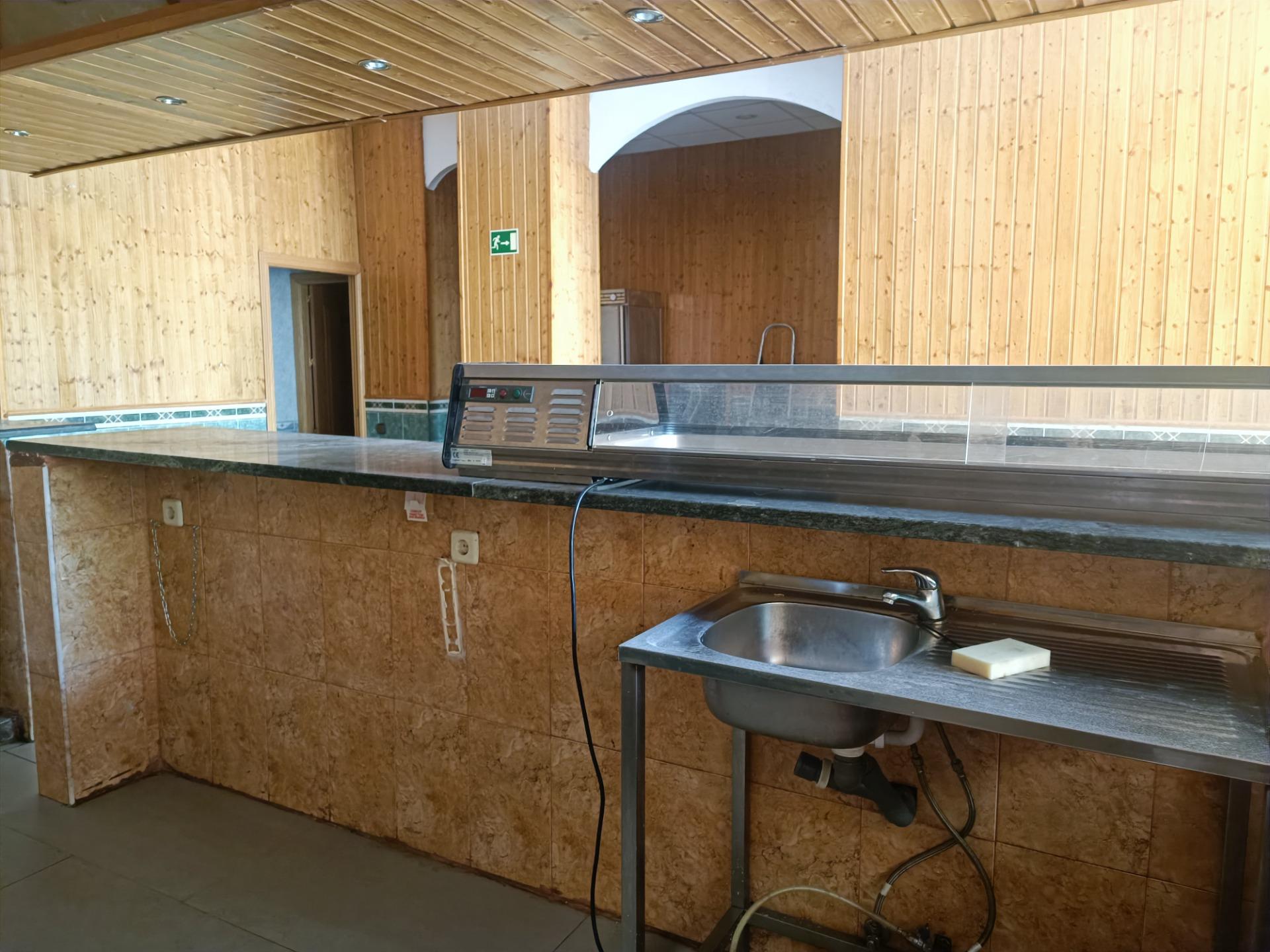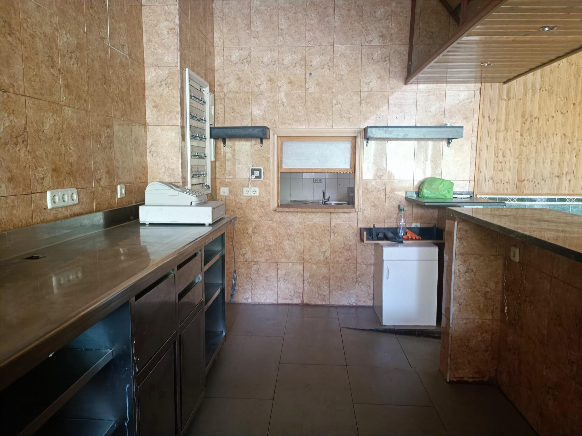 La cocina está equipada con una extracción de cinco elementos, grandes fogones, mesas de trabajo frías tanto grandes como pequeñas, cámara de congelación y frigorífica de dos alas.