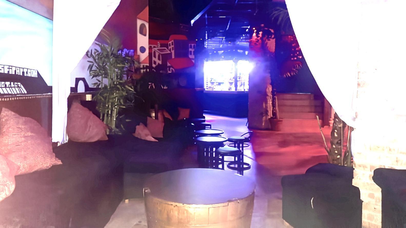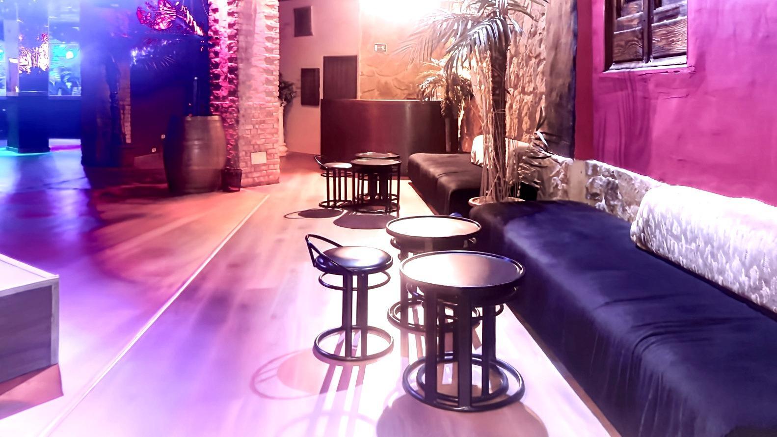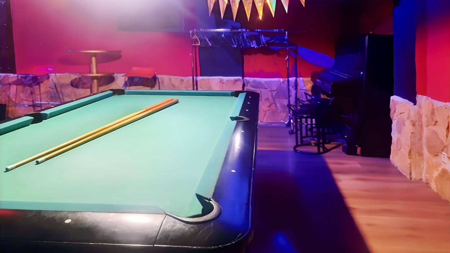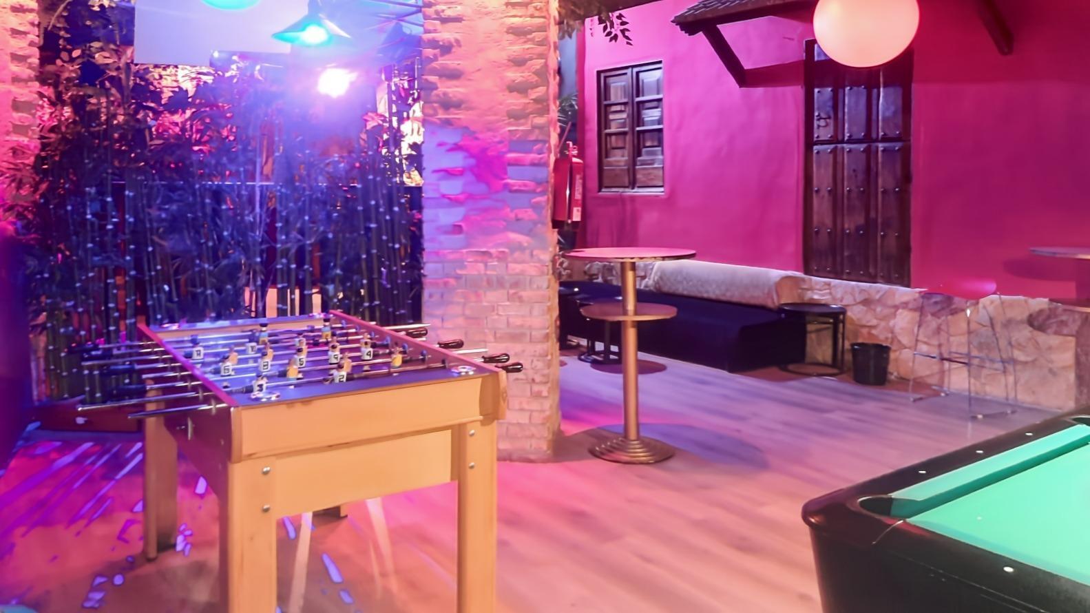 • Planta sótano: Sala de fiestas de 218 m², completamente equipada con zona chillout, escenario, mesas de billar, futbolín, dardos y dos barras para bebidas. Cuenta con licencia de bar 1ª especial, con apertura hasta las 4 de la mañana. Dispone de dos baños y entradas independientes a cada local.