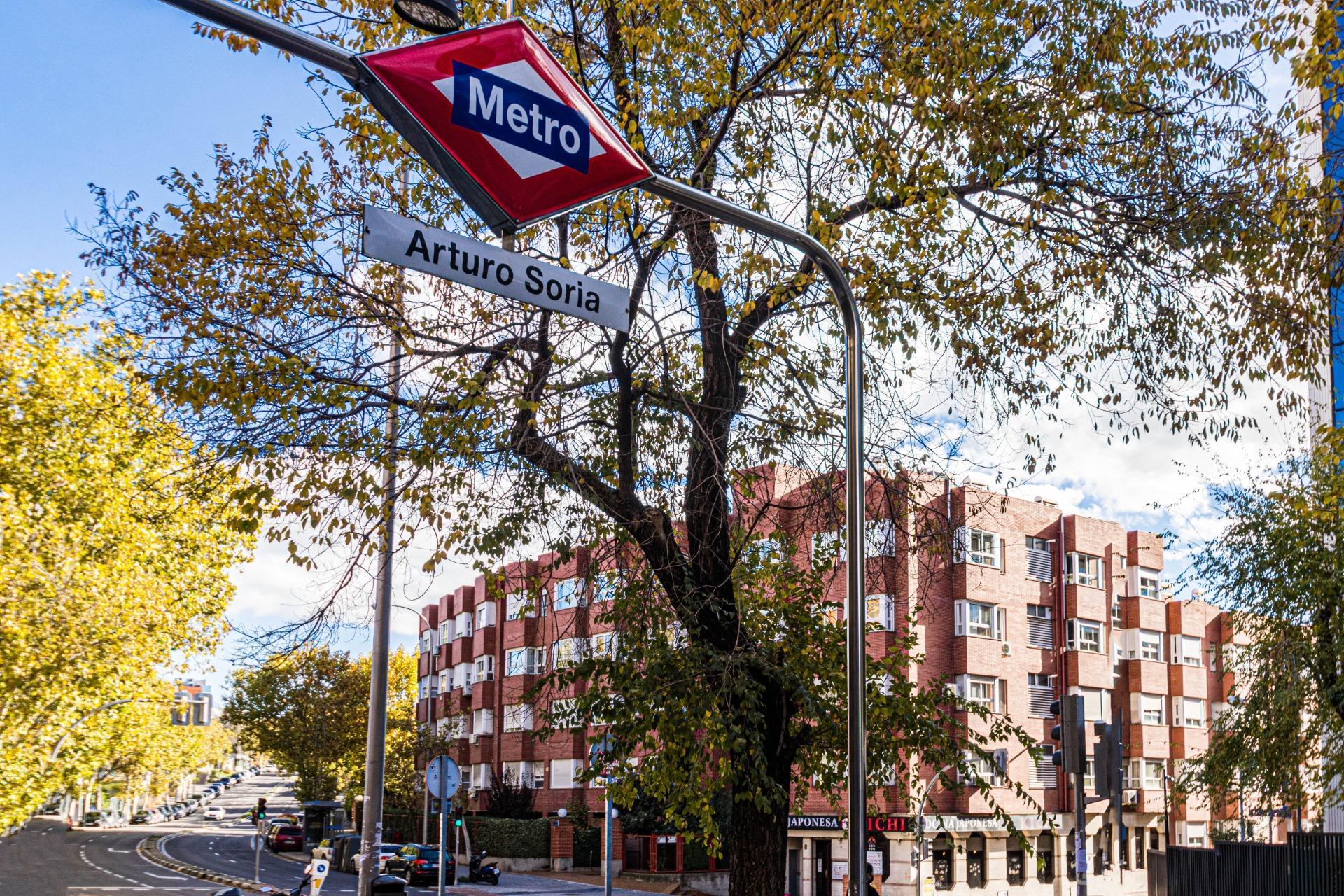 Frente a la estación de Metro Arturo Soria y numerosas paradas de autobuses urbanos , muy rápidos accesos a M30 , M40 y no mas de15mn del Aeropuerto Internacional Adolfo Suarez Madrid Barajas .