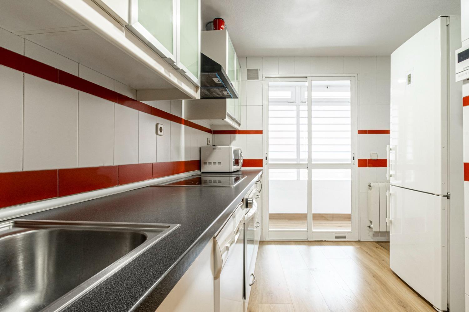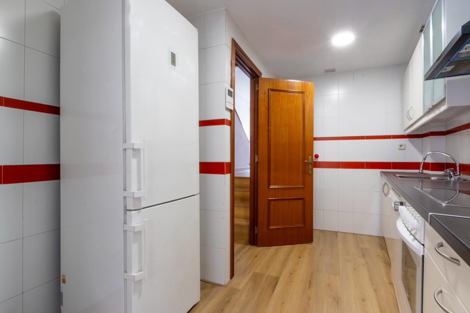 1ªPLANTA : Vestíbulo de entrada con armario empotrado , cocina independiente equipada con todos los electrodomésticos y salida a terraza / office de lavado , amplío y luminoso salón / comedor de aprox. 20m² de orientación Noreste y escalera de acceso a planta superior .