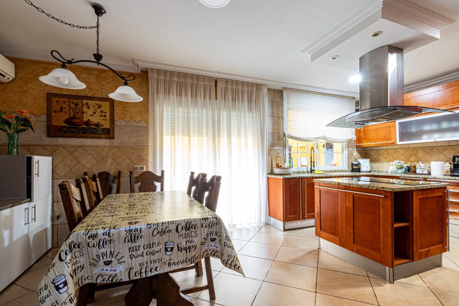 cocina independiente de 25m² con isla central, muy equipada de electrodomésticos y salida a terraza.
