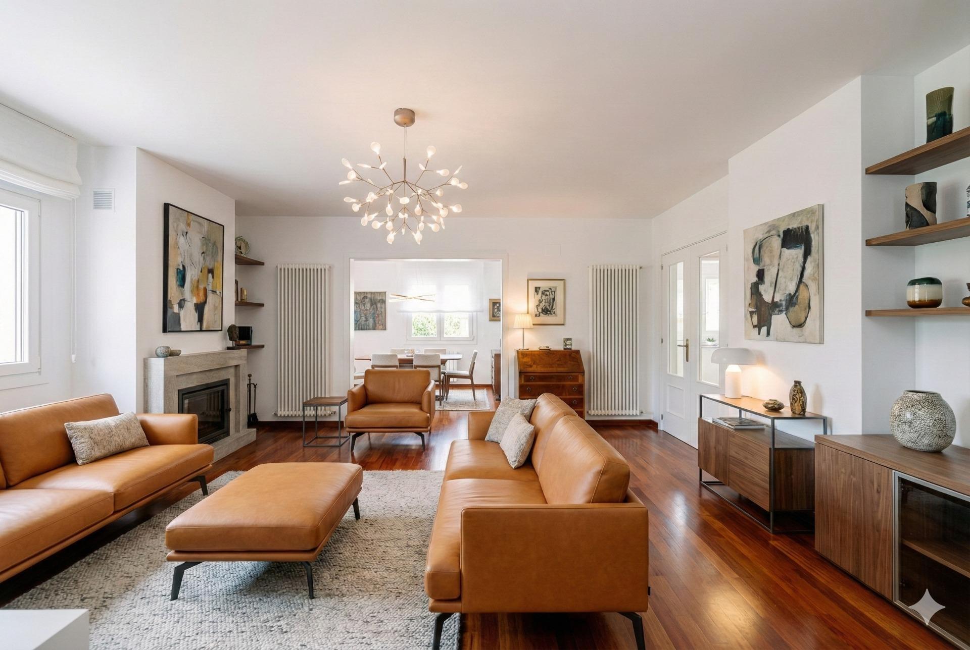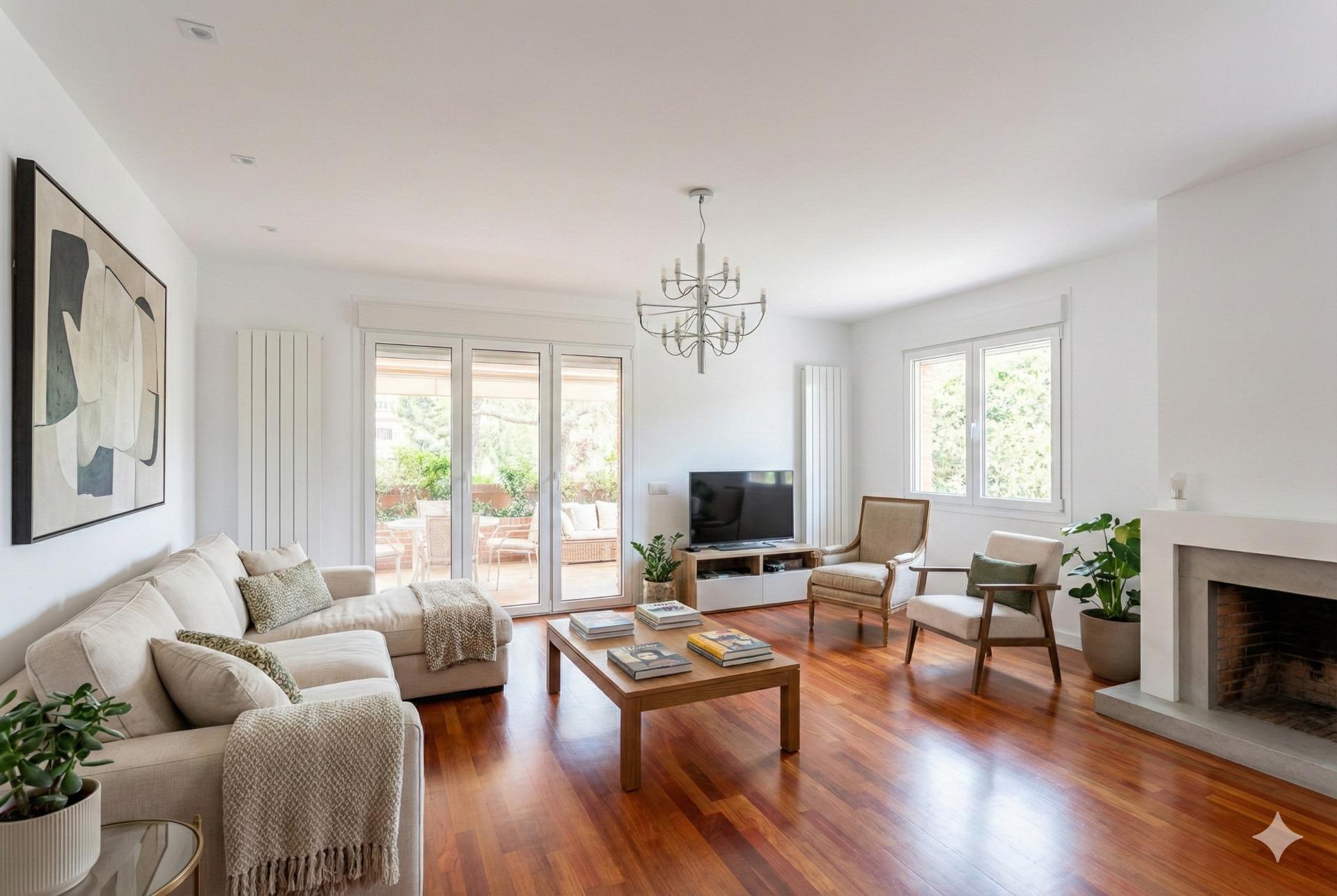 En una parcela verde de 522m², la casa cuenta con cuatro plantas distribuidas inteligentemente. Esta vivienda cuenta con amplios espacios luminosos como su salón con chimenea y acceso al porche exterior, ideal para disfrutar momentos al aire libre. De los cinco acogedores dormitorios que ofrece, dos proporcionan un confort adicional gracias a sus terrazas privadas; el dormitorio principal destaca por su amplio vestidor y baño en suite. En las fotos que acompañan este anuncio se aprecia el estado actual de las diferentes estancias (fotos reales) y cómo podría ser su aspecto una vez actualizadas (fotos tratadas con inteligencia artificial).
