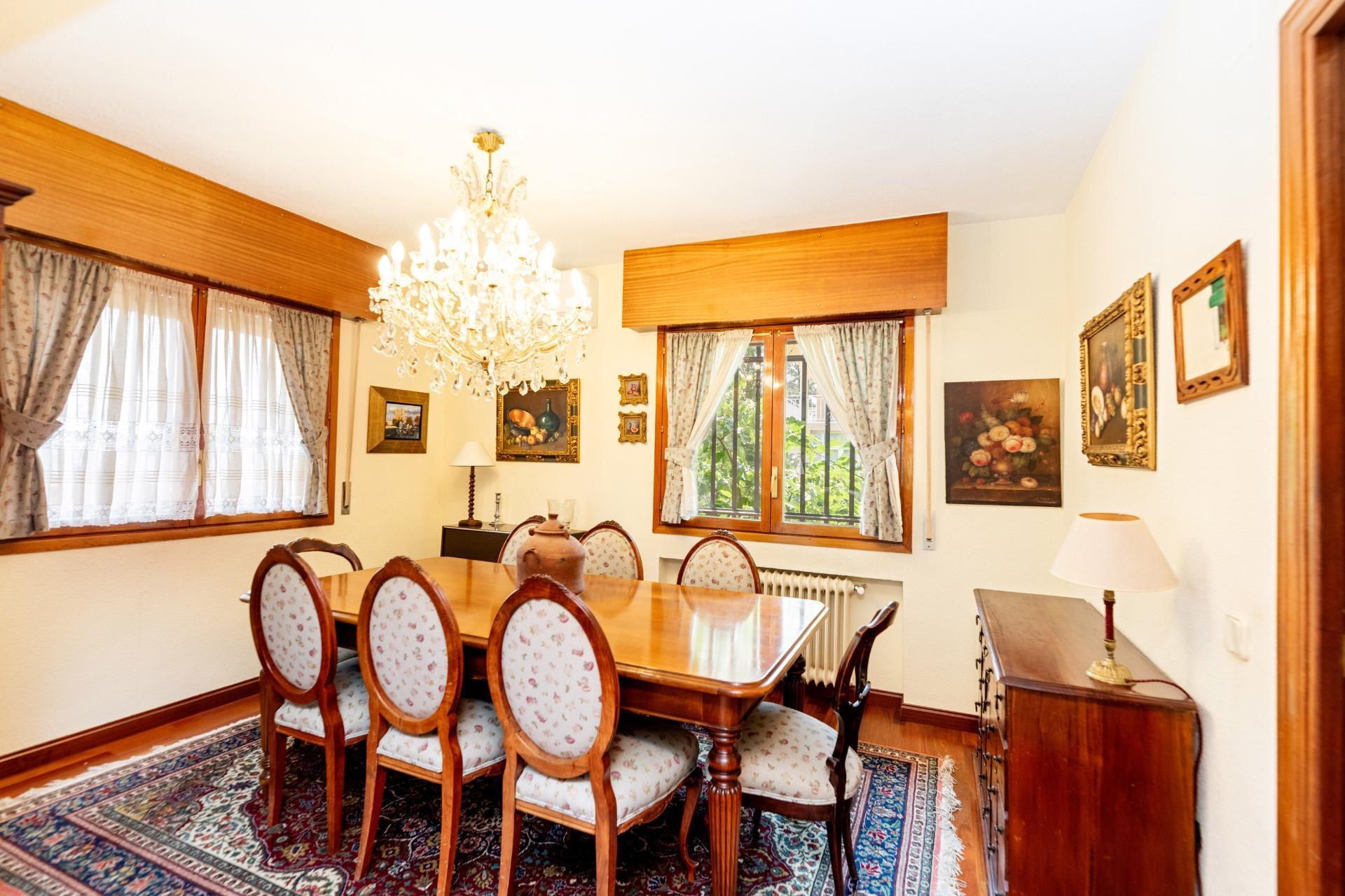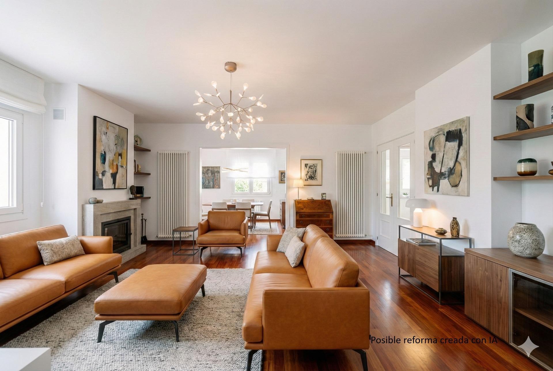 En una parcela verde de 522m², la casa cuenta con cuatro plantas distribuidas inteligentemente. Esta vivienda ofrece amplios y luminosos espacios como su salón con chimenea y acceso al porche exterior, ideal para disfrutar momentos al aire libre. De los cinco acogedores dormitorios que ofrece, dos proporcionan un confort adicional gracias a sus terrazas privadas; el dormitorio principal destaca por su amplio vestidor y baño en suite. En las fotos que acompañan este anuncio se aprecia el estado actual de las diferentes estancias (fotos reales) y cómo podría ser su aspecto una vez actualizadas (fotos tratadas con inteligencia artificial).
