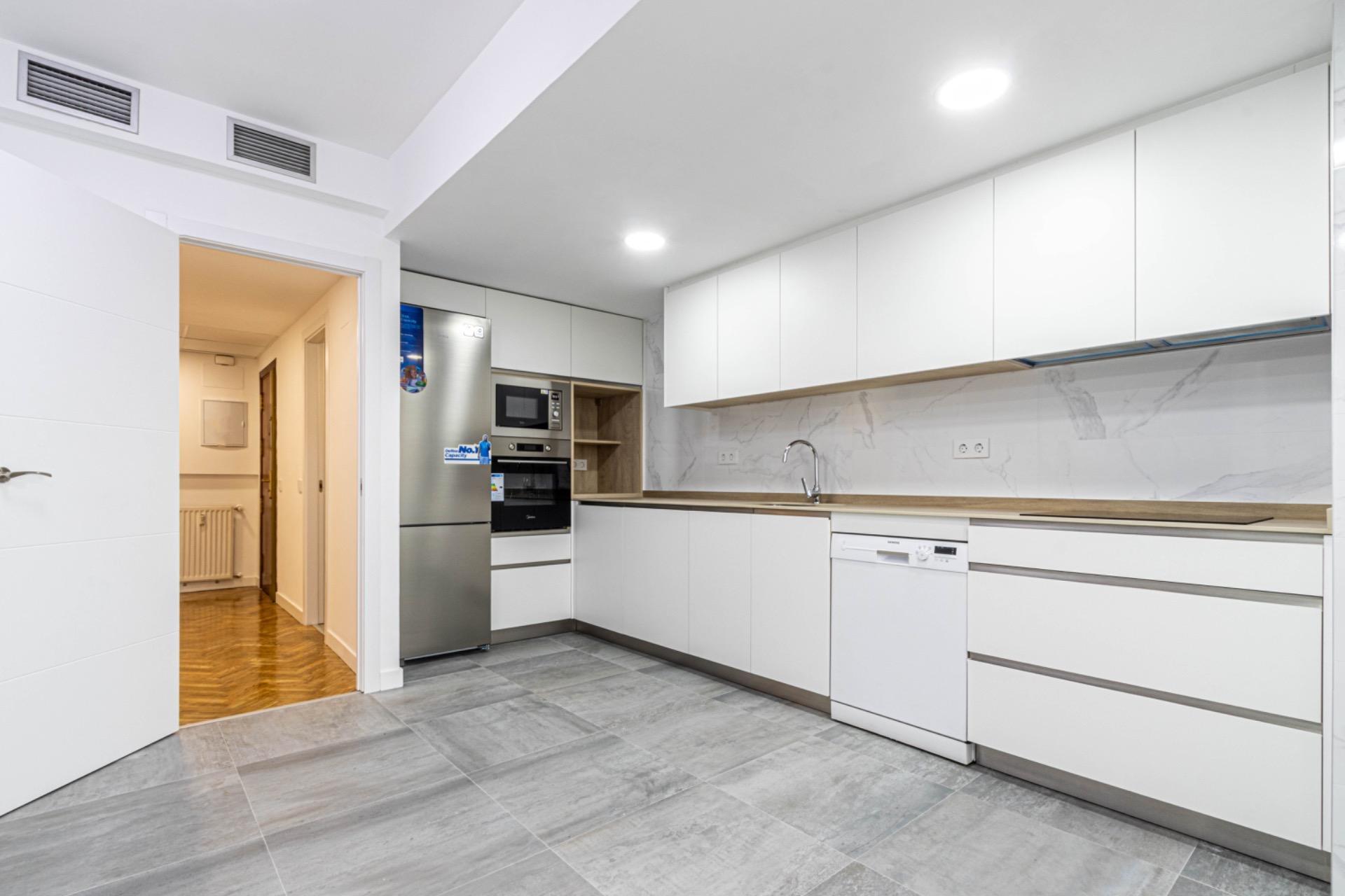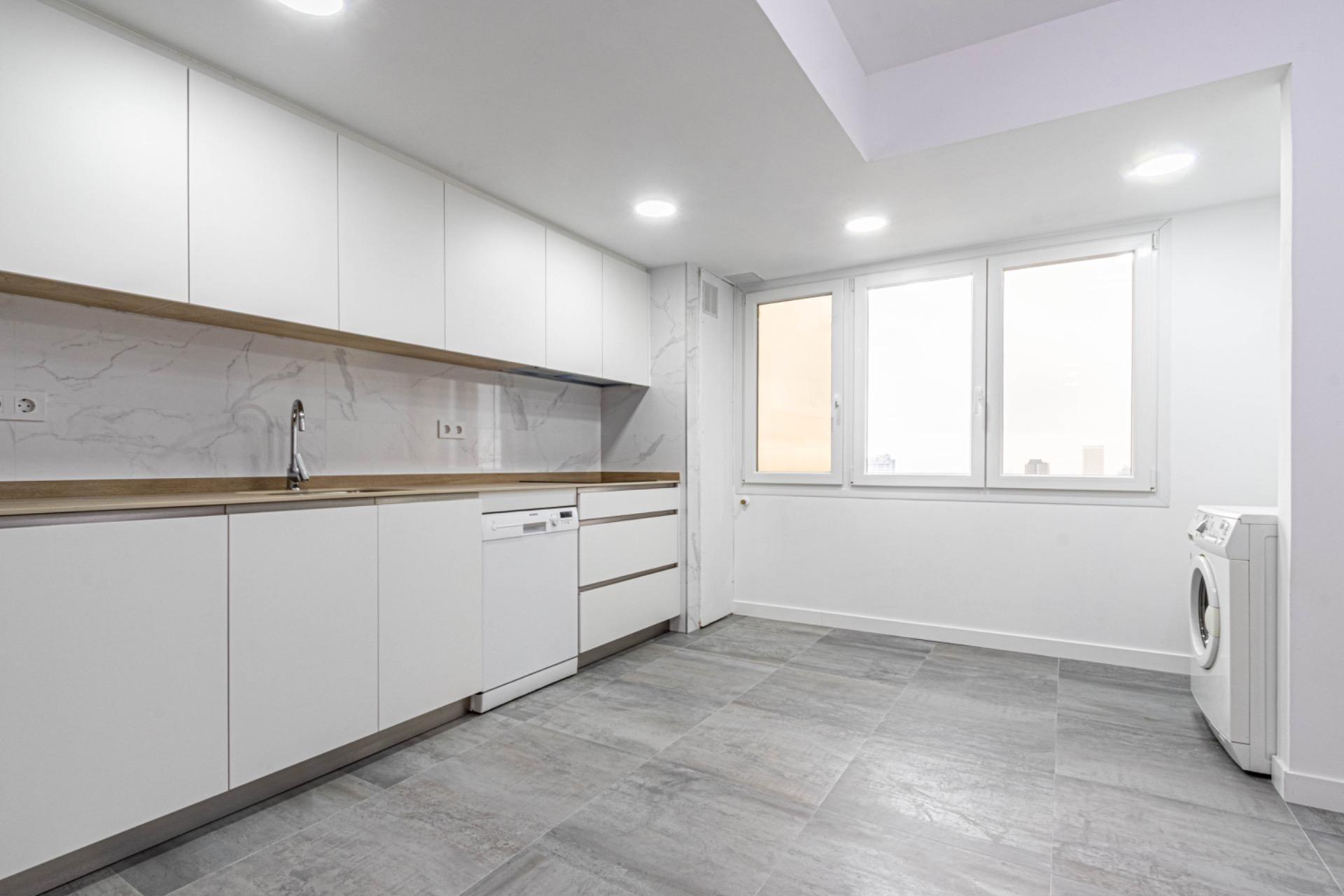 Se trata de un piso de 3 habitaciones, 2 baños y 1 aseo. Con un gran salon y cocina independiente, amplia y luminosa, amueblada y con todos los electrodomésticos nuevos. Totalmente reformado a estrenar. Con aire acondicionado por conductos en todo el inmueble y armarios empotrados en las habitaciones y en el recibidor. Está repleto de ventanales que ofrecen una gran luminosidad y vistas impresionantes. Además, incluye plaza de garaje en el edificio. La finca posee conserje.