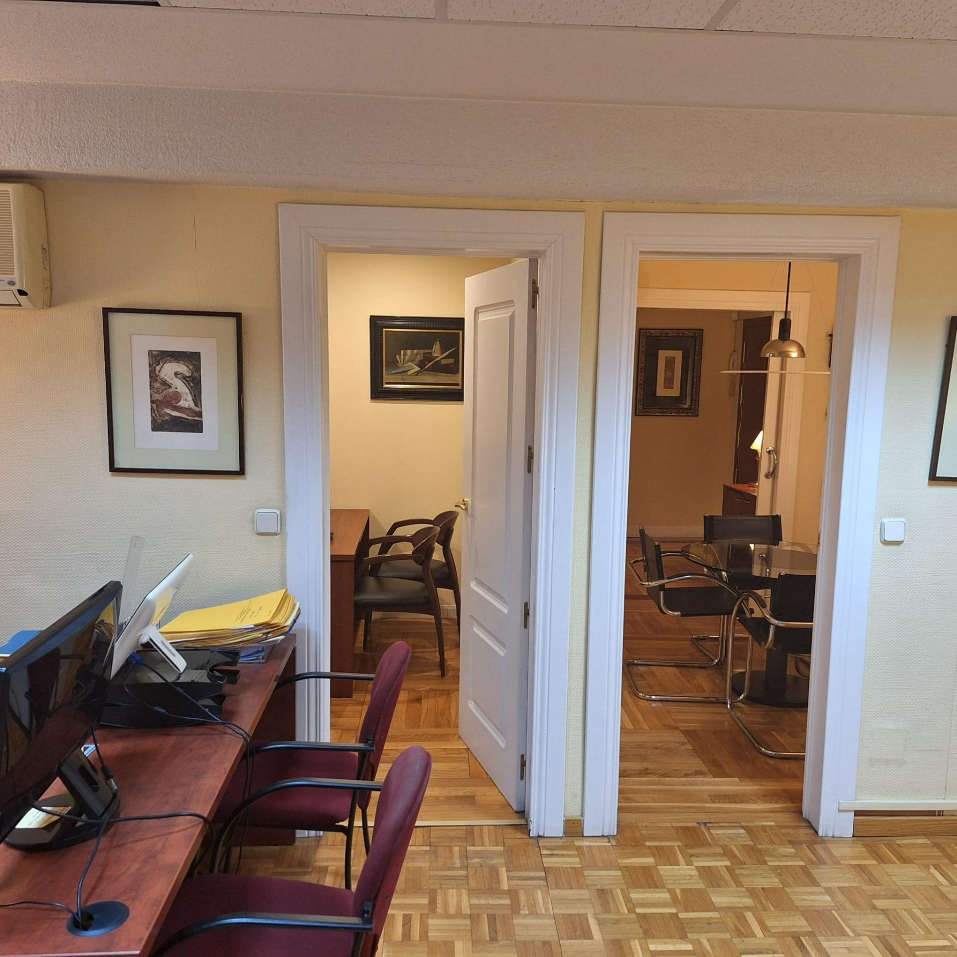Son dos inscripciones registrales distintas, aunque están físicamente unidas por dos puertas interiores, que se comunican ambas oficinas en su interior, teniendo dos puertas exteriores de acceso en el pasillo del interior de la finca.