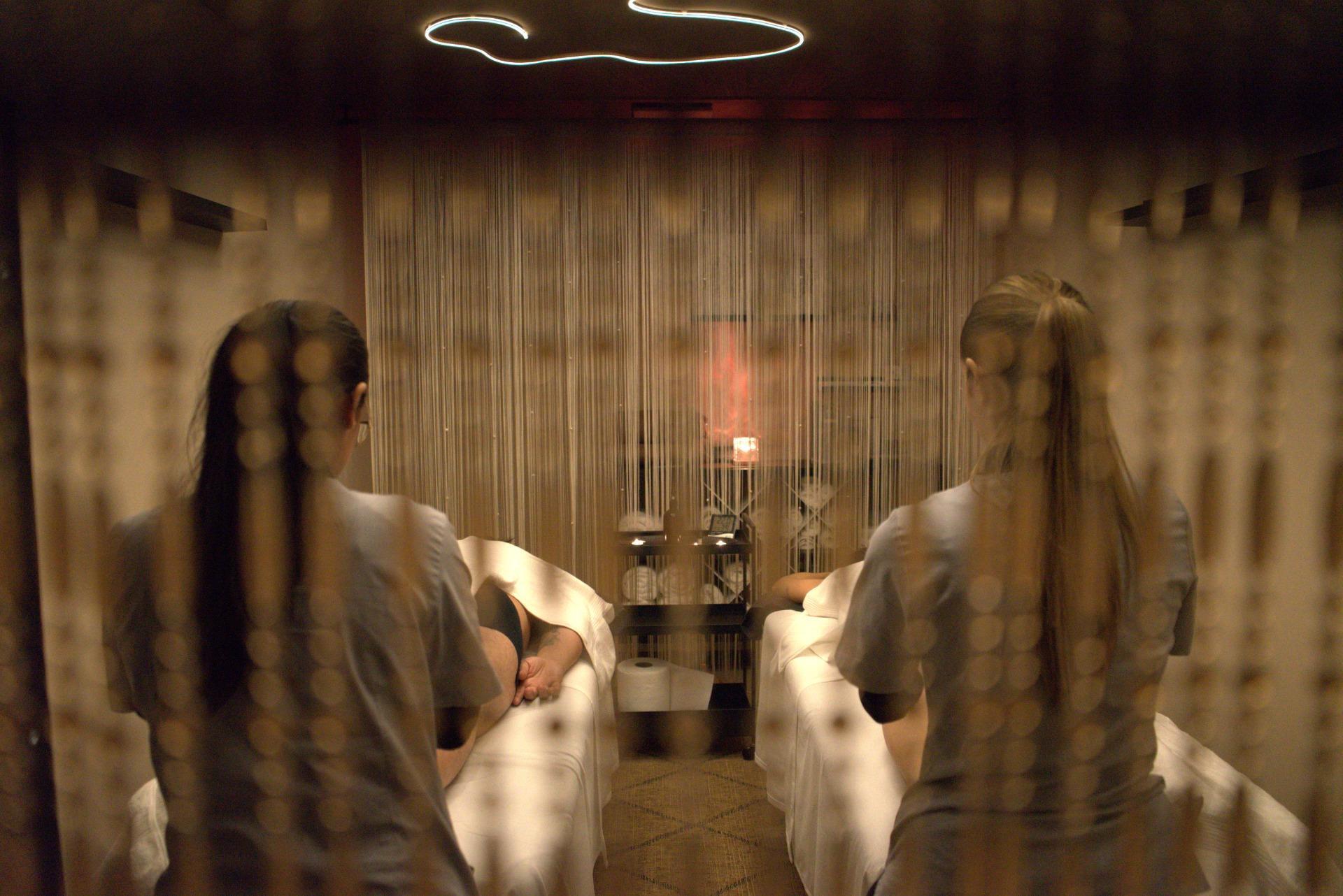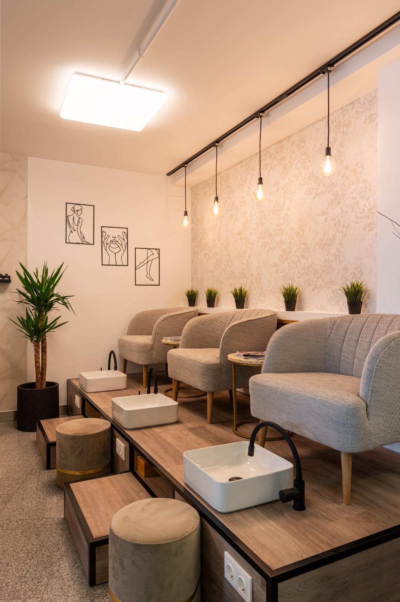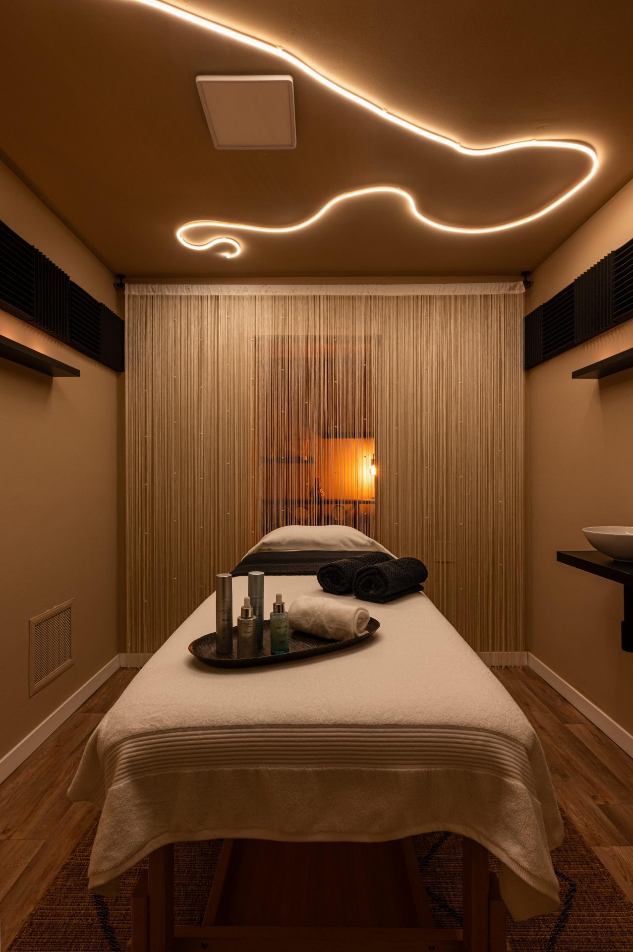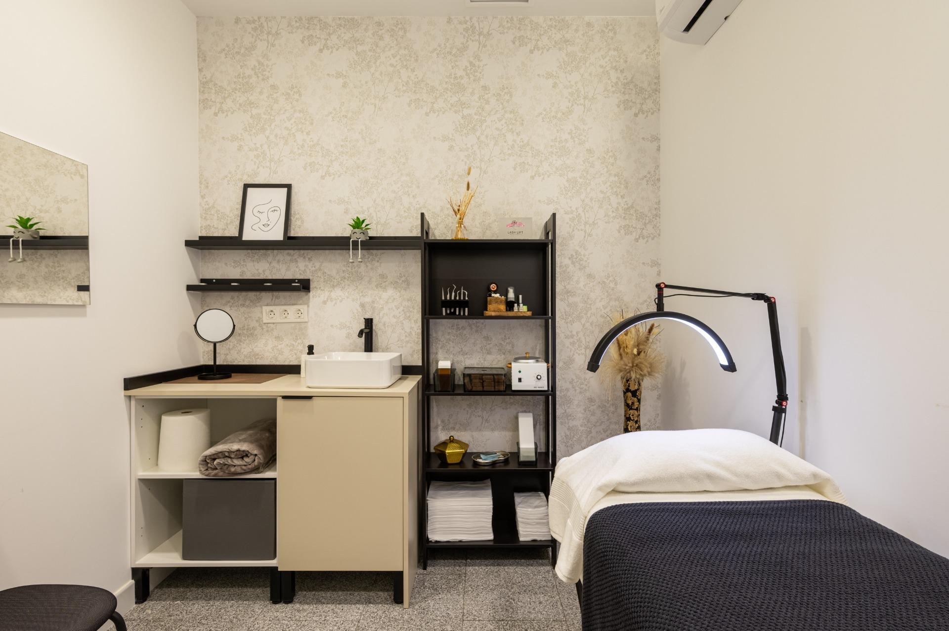 Cada cabina destinada a tratamientos estéticos está equipada no solo con aire acondicionado frío/calor sino también con suministro directo de agua y desagüe funcionales.