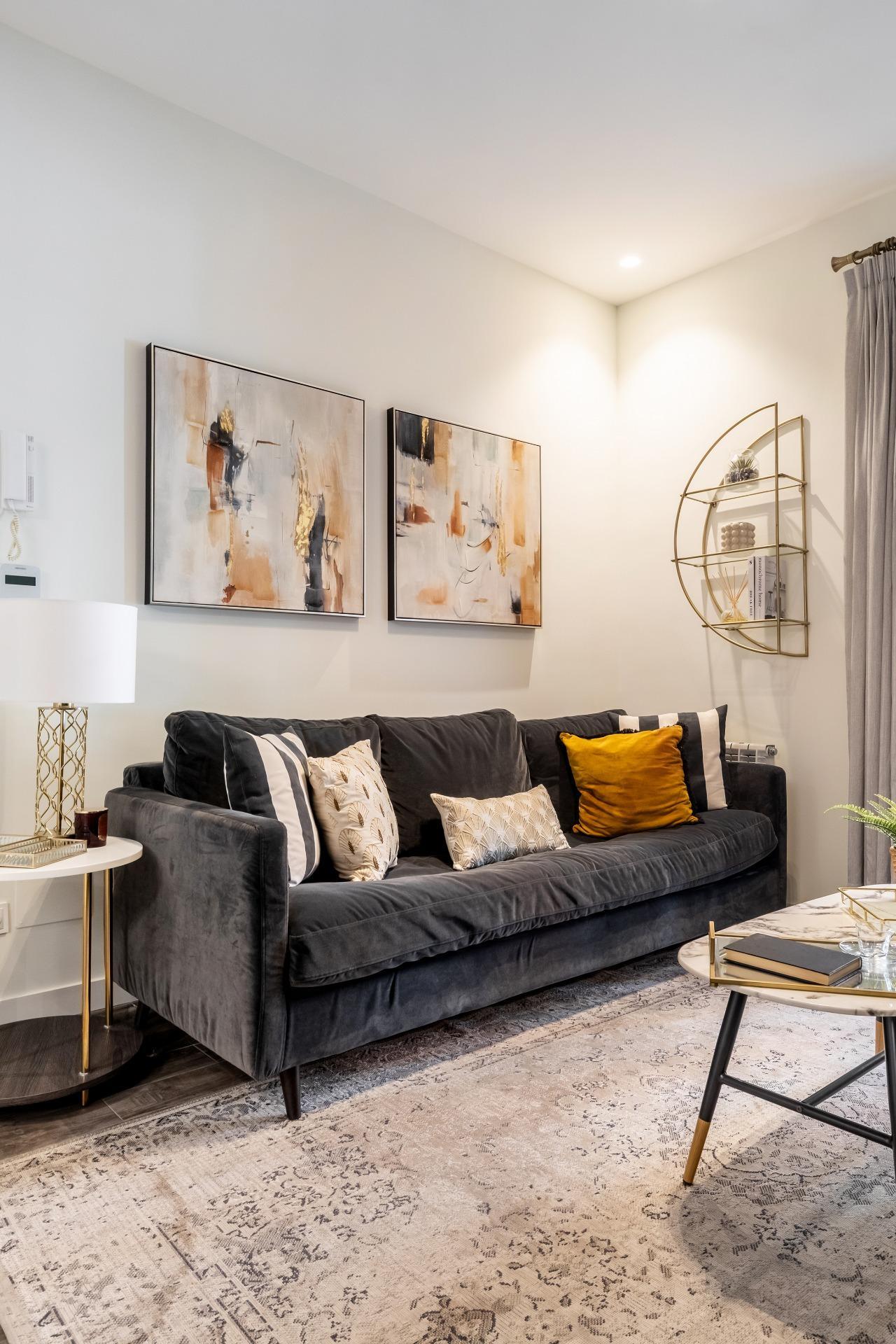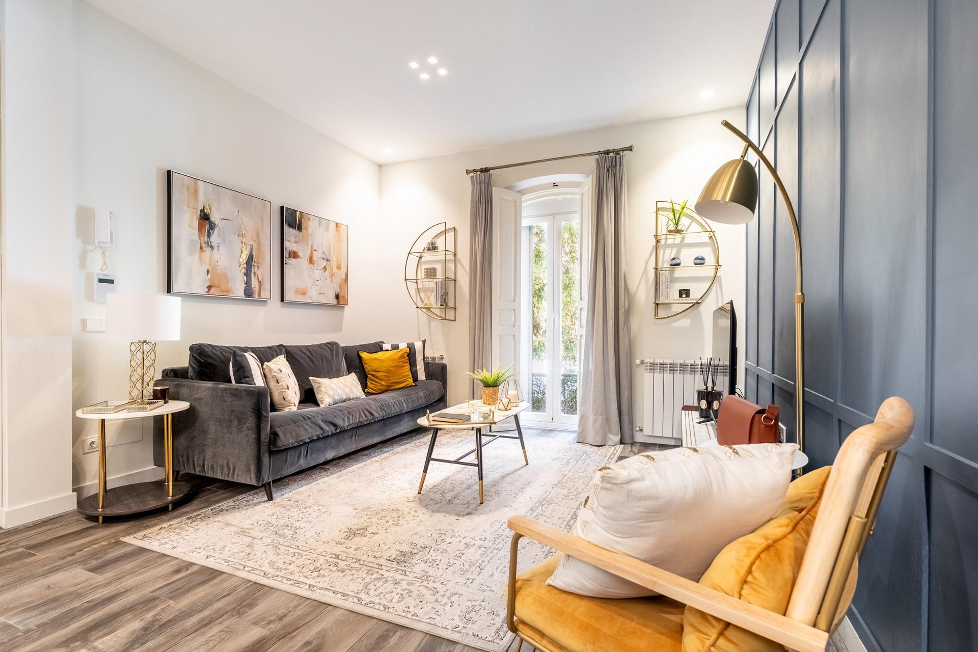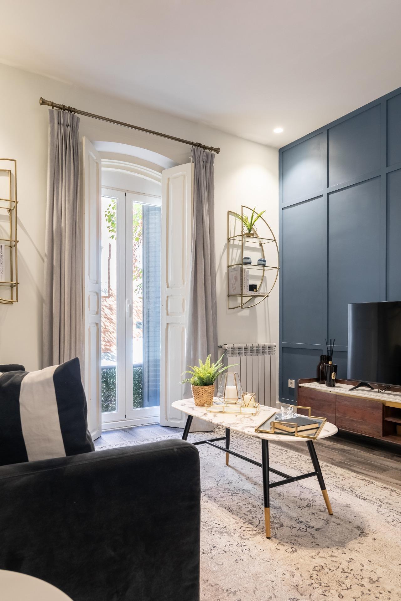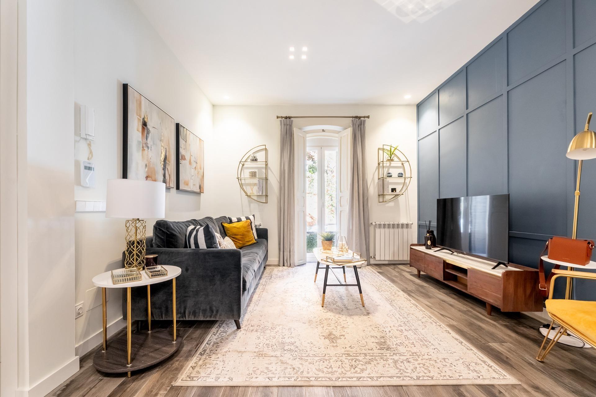 Entrando a la vivienda por la puerta principal accedemos directamente a un espacio diáfano en el que tenemos a la derecha una cocina abierta totalmente equipada y a la izquierda un salón con un balcón que abre la estancia a la calle Claudio Coello.