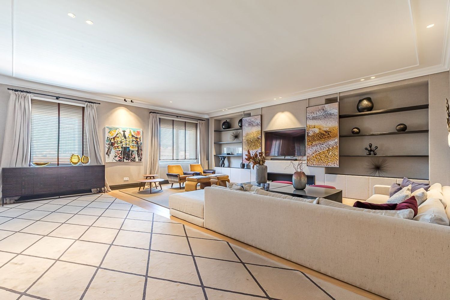 Al entrar en la vivienda, nos recibe un elegante hall con armarios empotrados, ideal como espacio de bienvenida y perfecto para mantener el orden desde el primer paso. Desde aquí, se accede al corazón de la casa: un espectacular salón-comedor bañado en luz natural, con amplios ventanales que enmarcan unas preciosas vistas a la ciudad y a la calle Lagasca. Un espacio generoso y acogedor, ideal tanto para la vida familiar como para el disfrute social.