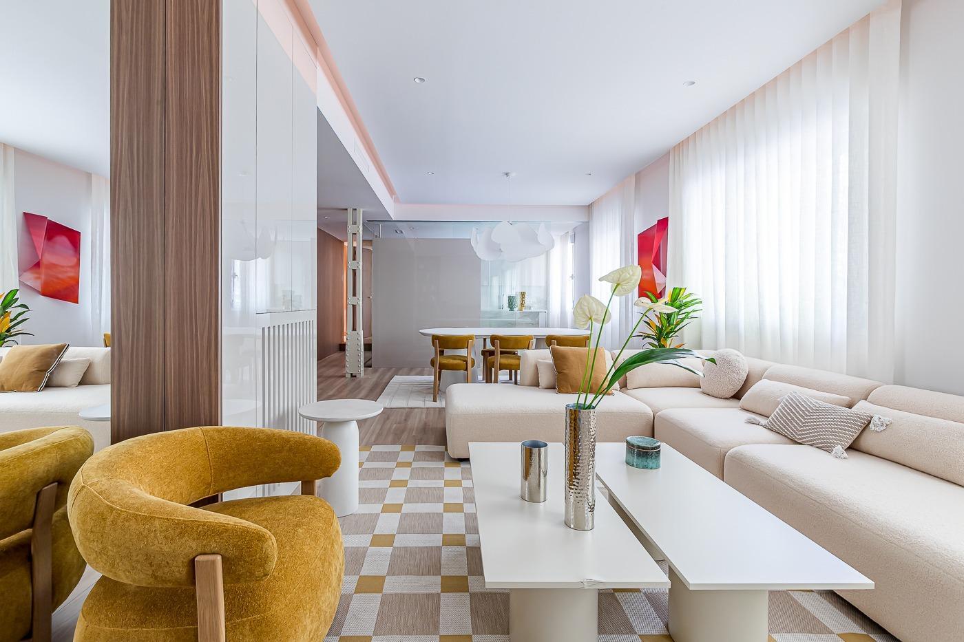 La vivienda, de 125 metros cuadrados, ha sido reformada con un diseño contemporáneo y materiales de altísima calidad. Sus tres elegantes habitaciones en suite, dos de ellas con su propio baño privado, ofrecen el máximo confort y privacidad. La distribución es inteligente y funcional, con espacios amplios, luminosos y perfectamente aprovechados. Al entrar tenemos un amplio salón comedor y una cocina totalmente equipada y separada con cristal. Por el lado izquierdo discurre un pasillo que distribuye primero un baño y la primera habitación, este baño hace también la función de aseo de cortesía al estar separado de la habitación. Siguiendo por el pasillo encontramos otra habitación con baño privado y la habitación principal al fondo también con baño en suite. Los acabados de lujo, los suelos de madera natural, la cocina de diseño y la cuidada iluminación hacen de esta propiedad un auténtico oasis urbano para quienes buscan estilo, calidad y bienestar.