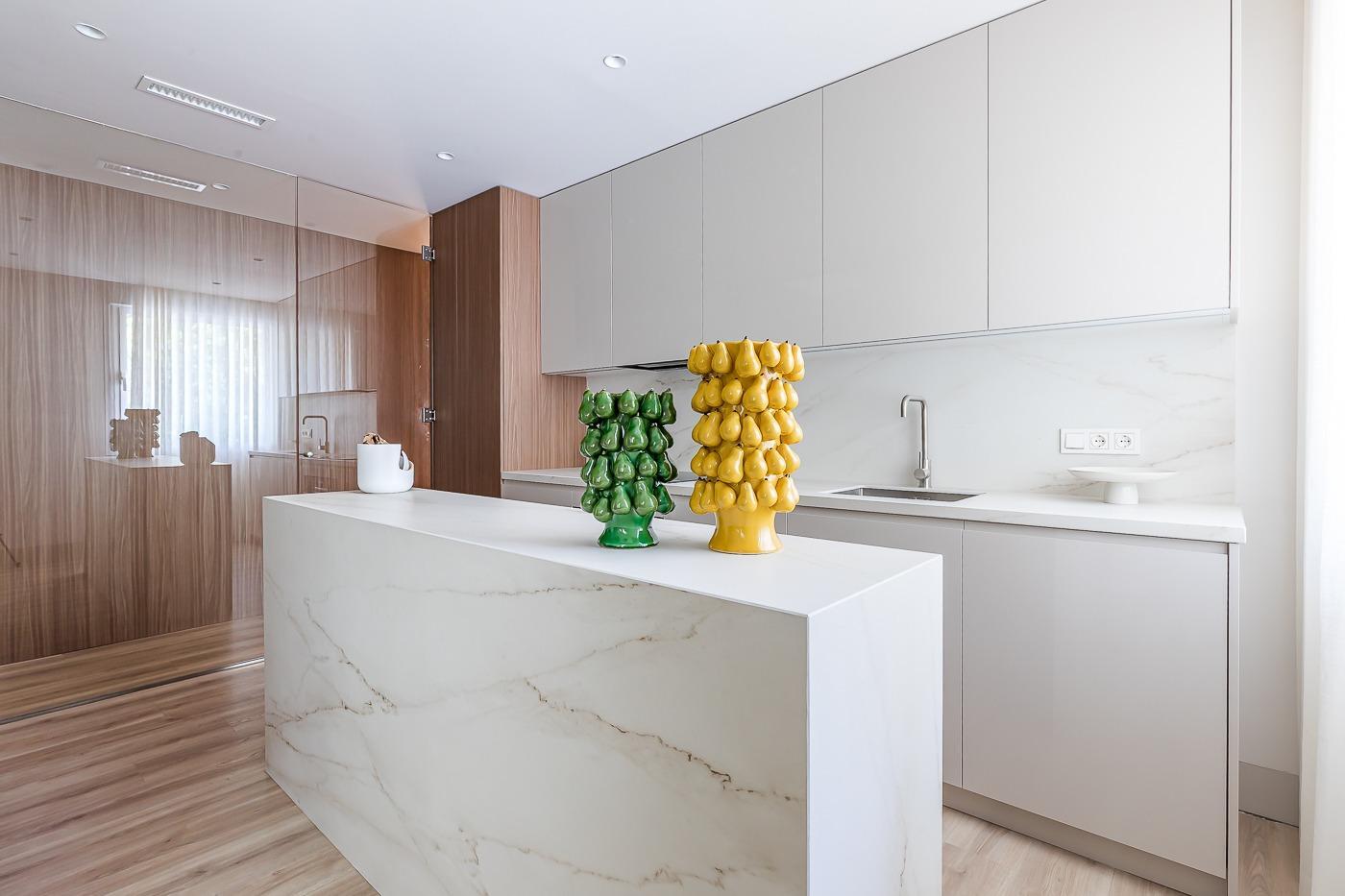 La vivienda, de 125 metros cuadrados, ha sido reformada con un diseño contemporáneo y materiales de altísima calidad. Sus tres elegantes habitaciones en suite, dos de ellas con su propio baño privado, ofrecen el máximo confort y privacidad. La distribución es inteligente y funcional, con espacios amplios, luminosos y perfectamente aprovechados. Al entrar tenemos un amplio salón comedor y una cocina totalmente equipada y separada con cristal. Por el lado izquierdo discurre un pasillo que distribuye primero un baño y la primera habitación, este baño hace también la función de aseo de cortesía al estar separado de la habitación. Siguiendo por el pasillo encontramos otra habitación con baño privado y la habitación principal al fondo también con baño en suite. Los acabados de lujo, los suelos de madera natural, la cocina de diseño y la cuidada iluminación hacen de esta propiedad un auténtico oasis urbano para quienes buscan estilo, calidad y bienestar.