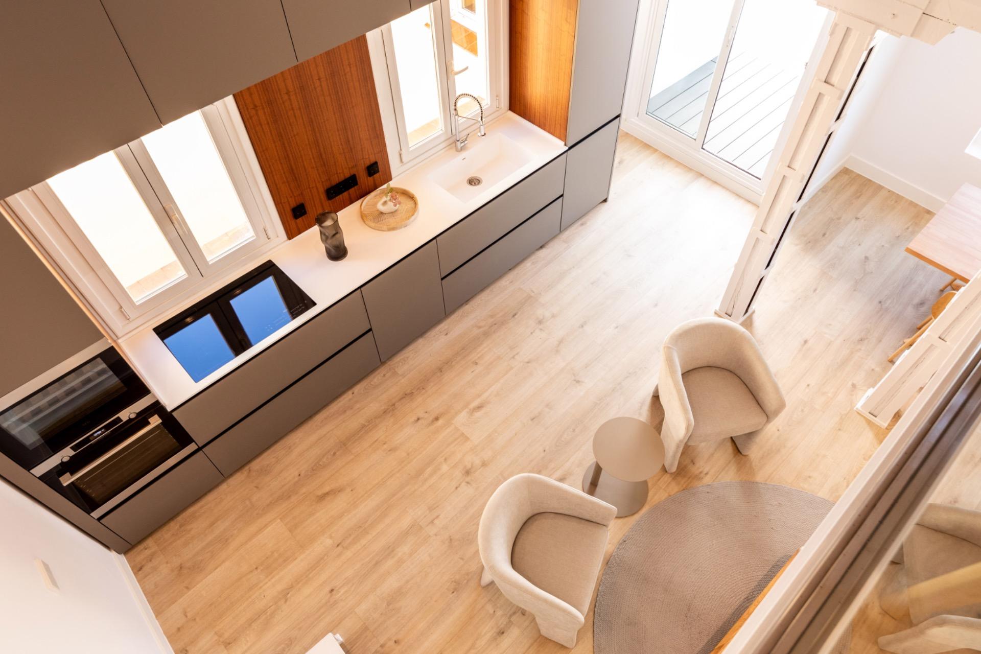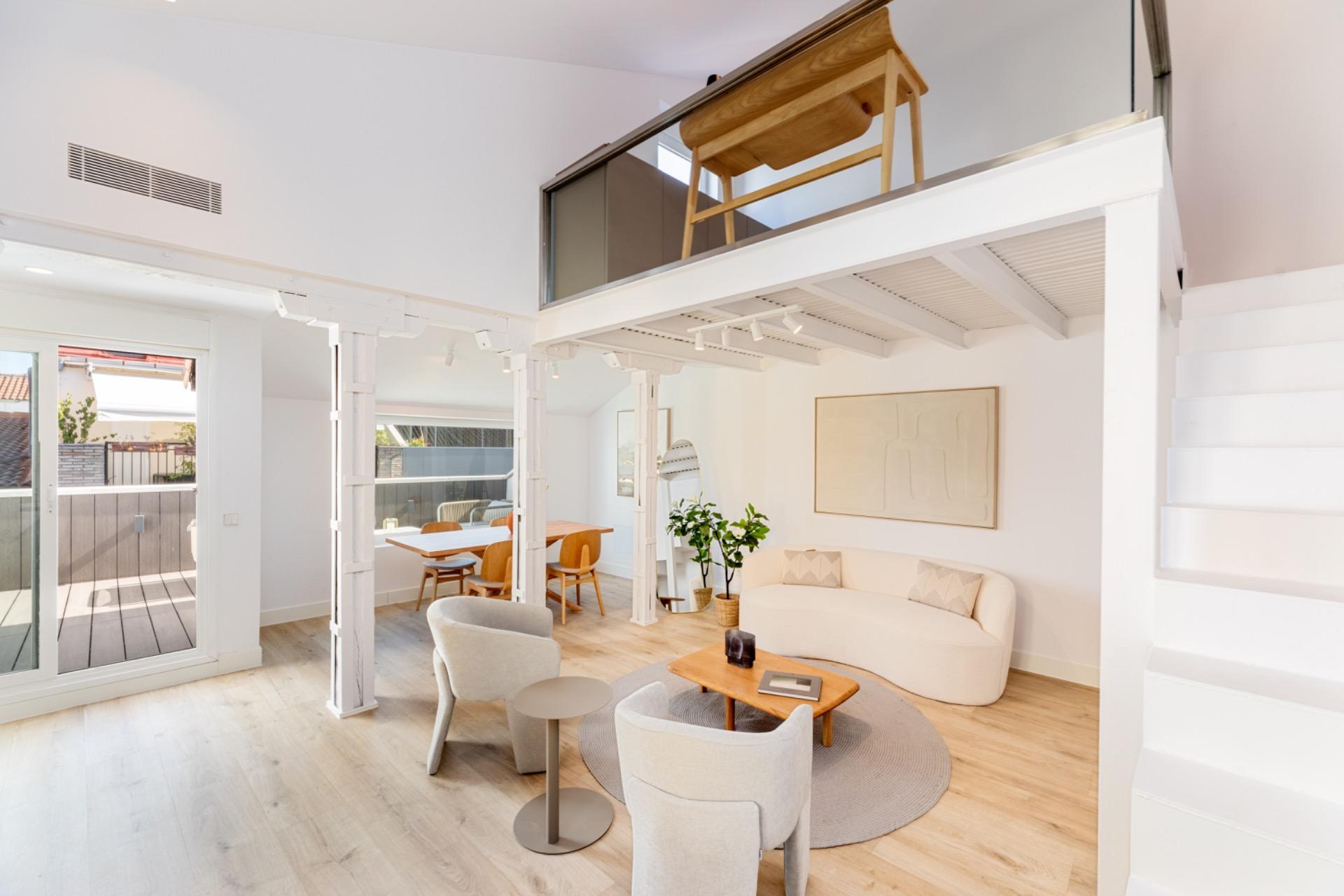 Déjate seducir por este exclusivo ático de 86 m², una joya en una finca clásica de 2003 con ascensor, en una de las zonas más codiciadas de Madrid.~~Ático en el barrio de Justicia (Madrid)~ -Superficie: 86 m² (según Catastro)~ – Ubicación: 4ª planta exterior, finca clásica de 2003 con ascensor~Reforma: A estrenar, estilo actual, acabados de alta calidad~~Características principales~~Terraza:~Suelo de madera~Acceso desde el salón~Vistas despejadas al skyline de Madrid~~Distribución interior:~Gran salón comedor diáfano~Conserva columnas originales~Cocina americana a medida, totalmente equipada (electrodomésticos alta gama)~Aseo de cortesía decorado al detalle~~Zona de descanso:~Dormitorio principal:~ Exterior~ Orientación igual a la terraza~ Baño completo en suite~~Segundo dormitorio (tipo dúplex):~ En altura (acceso por escalera desde salón)~ Con ventana exterior~ Espacio abierto y adaptable~~Valor añadido~Techos altos~Luz natural todo el día + iluminación indirecta nocturna~Suelo de madera de roble en grandes lamas~Ventanas aislantes~Climatización por conductos~Amplia terraza para vivir al aire libre~