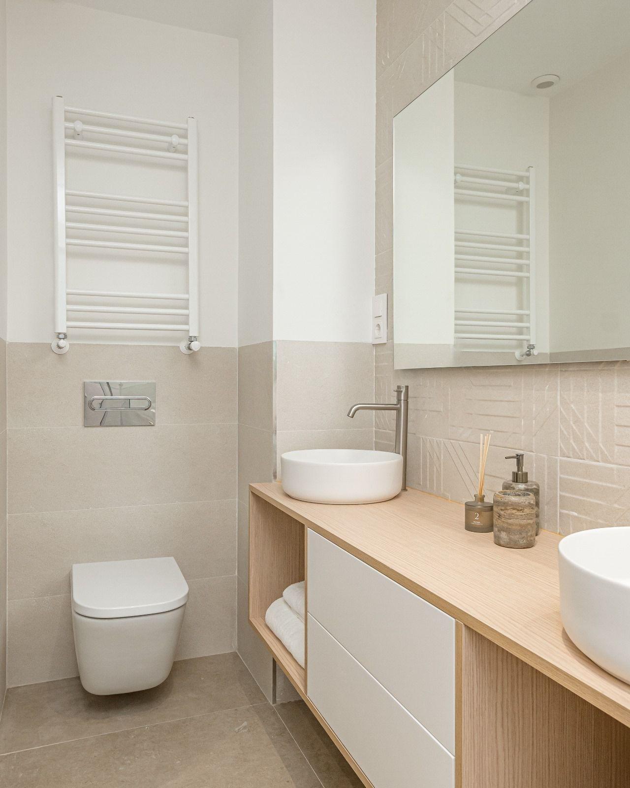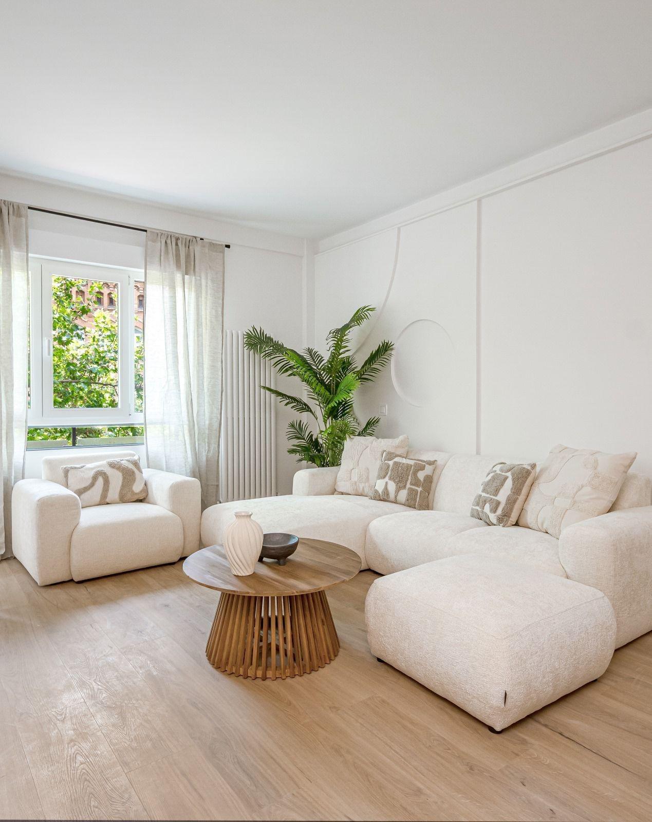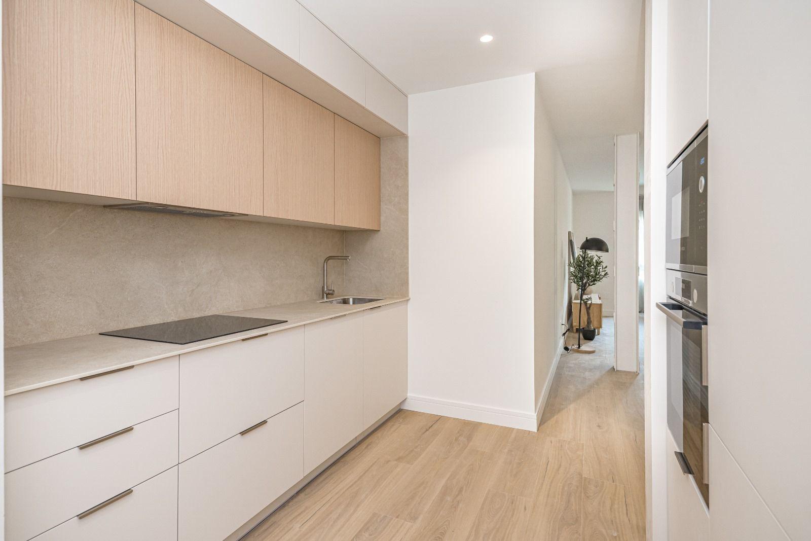 Reforma integral con criterios de eficiencia, confort y durabilidad~Instalaciones de fontanería y electricidad completamente renovadas (boletines incluidos)~Climatización por conductos con sistema AirZone, que permite regular la temperatura por estancia~Iluminación LED indirecta de bajo consumo~Techos altos con molduras restauradas~~Acabados y materiales~Suelos vinílicos texturizados de alta resistencia~Carpintería interior lacada en blanco de gran formato~Armarios empotrados hechos a medida~Cocina personalizada con materiales de primera calidad~Electrodomésticos integrados de marcas Bosch y Balay~Ventanas de PVC con cristal Guardian Sun: aislamiento térmico, acústico y control solar~~