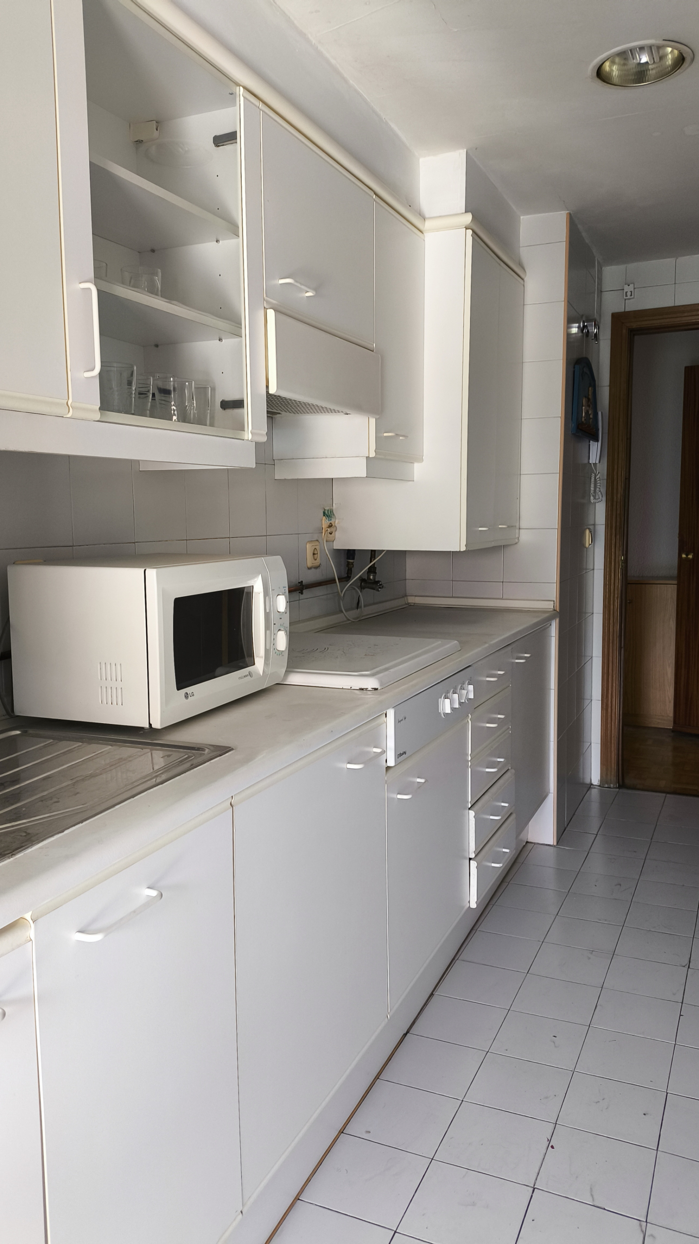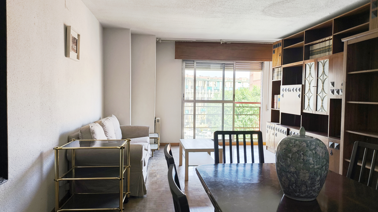 Para actualizar/reformar, tres habitaciones, dos baños completos, totalmente exterior, cocina independiente y grandísimo salón-comedor, en edificio cerrado con vigilancia y CCTV perimetral. Incluye plaza de aparcamiento perfectamente ubicada. ¡Precio negociable!