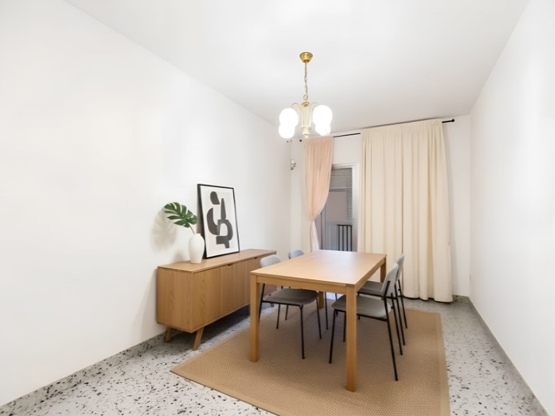 El piso es exterior y destaca por su luminosidad natural durante todo el día. Cuenta con una acogedora terraza, perfecta para crear un espacio de relax o una pequeña zona verde urbana. Su distribución actual permite múltiples posibilidades de renovación, ofreciendo la libertad de diseñar un hogar totalmente personalizado.