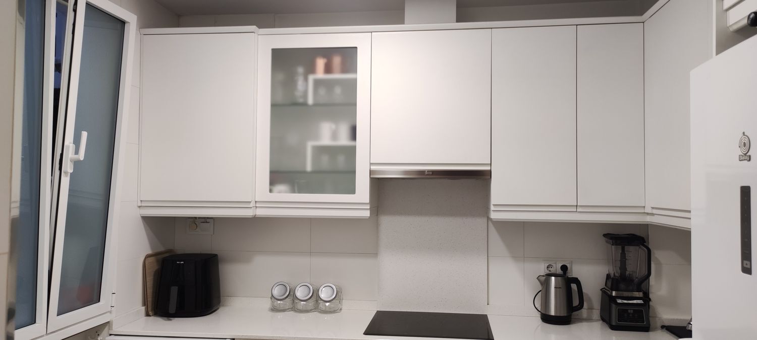 -Cocina independiente orientada a patio interior, con todos los electrodomésticos y mucho espacio para almacenaje.