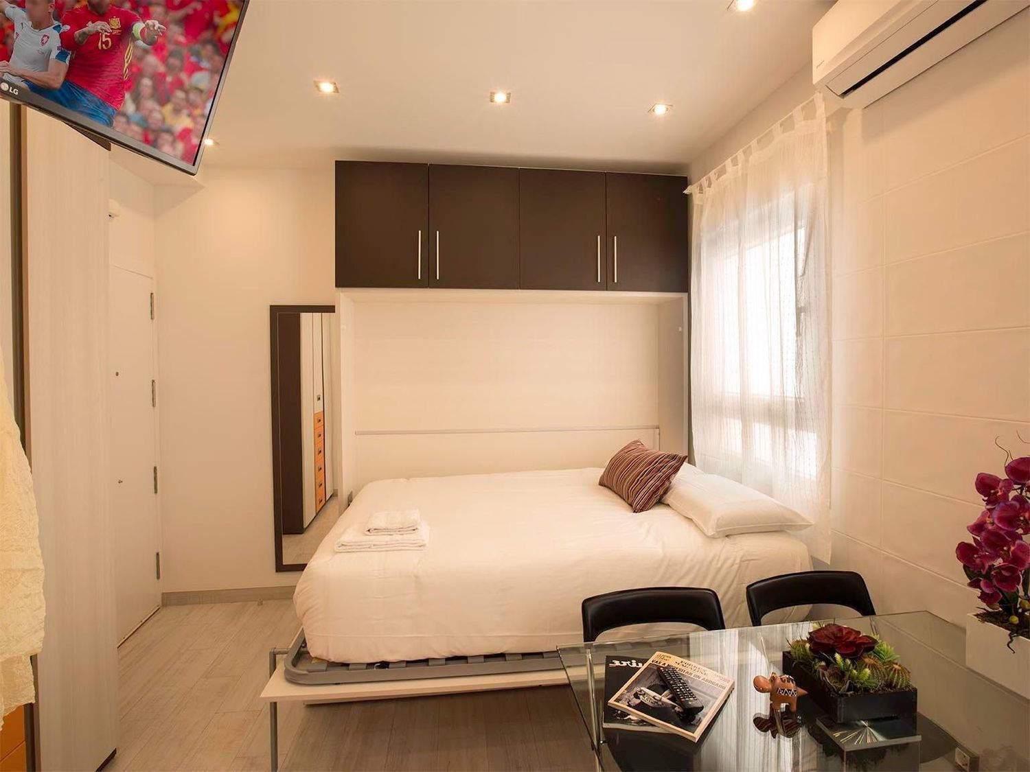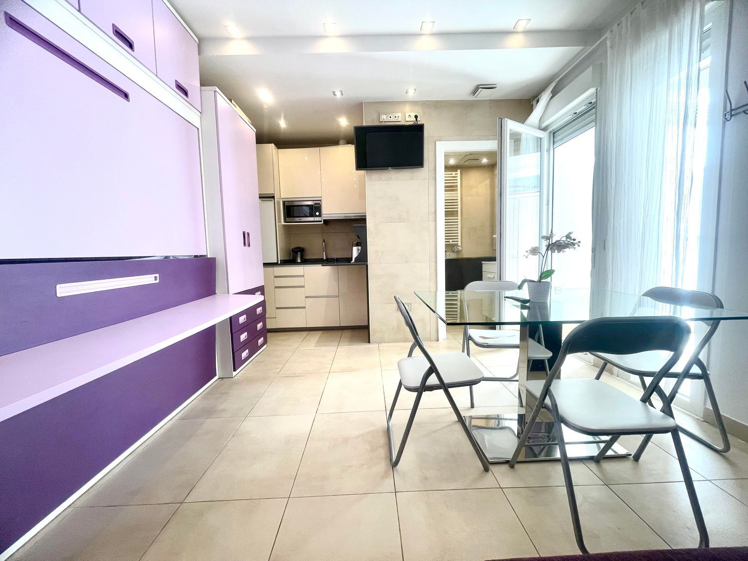 Impecable estudio con acceso a patio, reformado, amueblado, 1 baño. Frío / calor. Tv, menaje, cama grande abatibles, camas individuales abatibles. Lavavajillas, lavadora-secadora, frigorífico, etc.