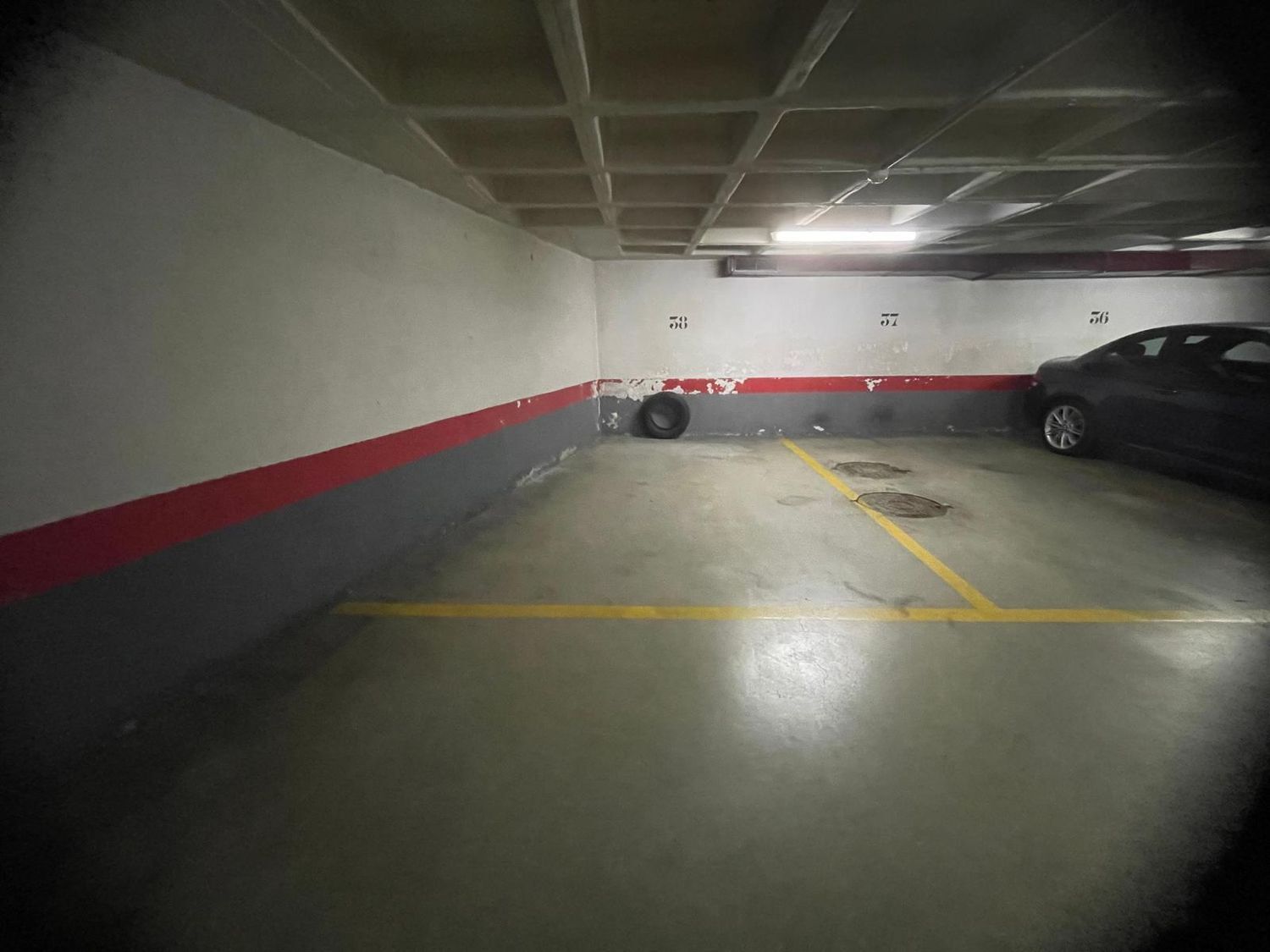 Plaza para coche grande, incluso todoterreno ya que no impide el paso al lindar con la pared. Medidas: longitud 4,50m x 3.35m.