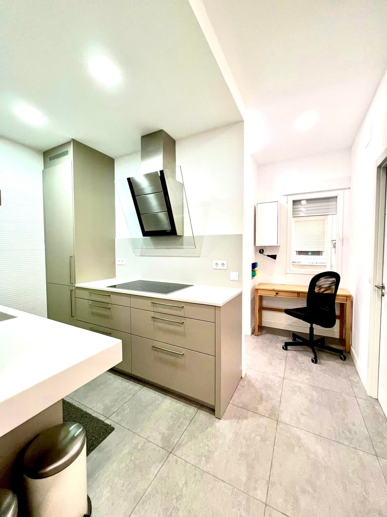 Amplio apartamento reformado, amueblado con 2 TV, 1 dormitorio independiente, 1 baño con ventana, cocina con primeras calidades horno, frigorífico, lavadora, microondas. Recibidor con mesa de trabajo en la ventana del recibidor, salón con 2 ventanas, sofá-cama, bomba de frío/calor.