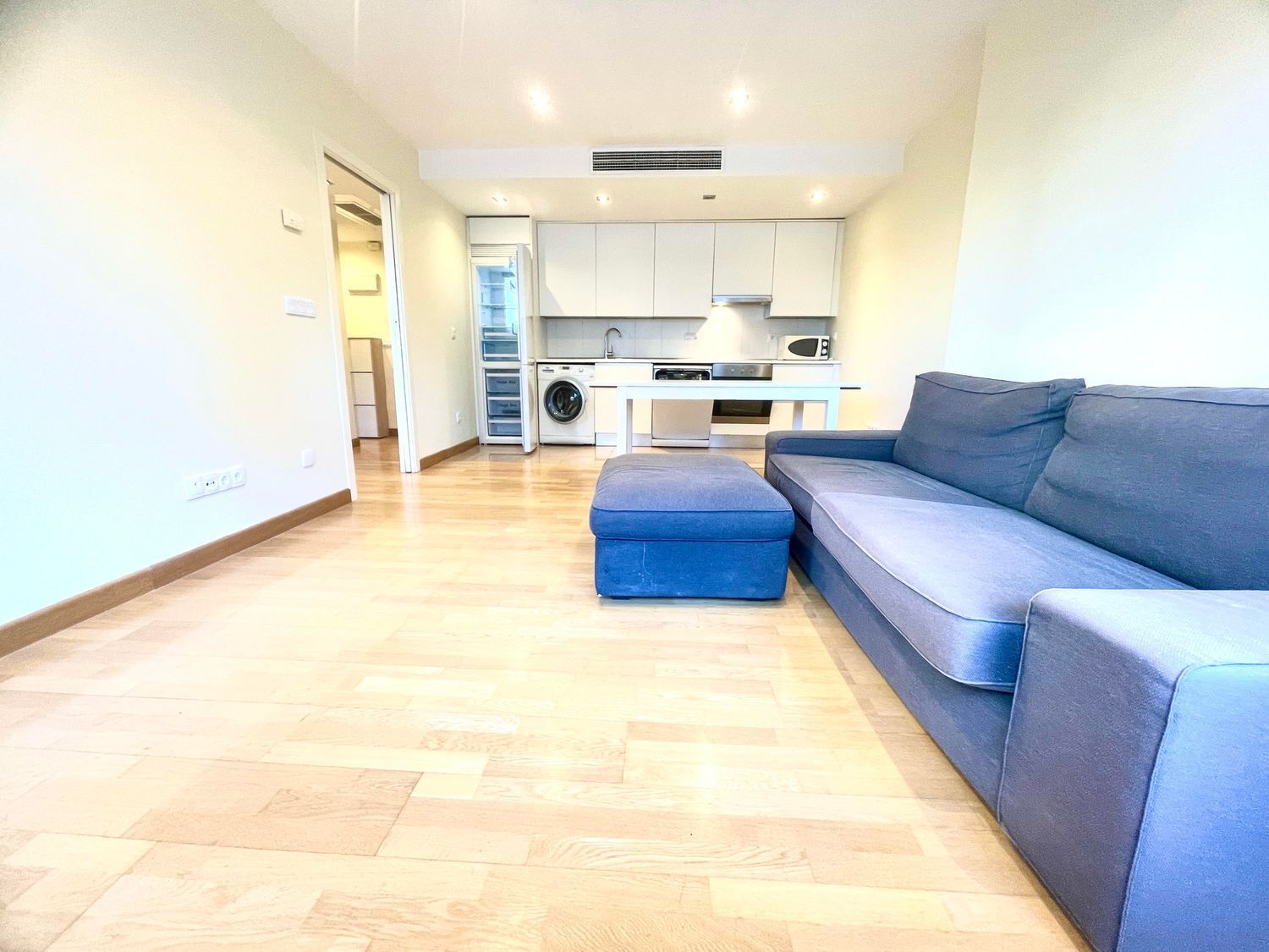 Amplio apartamento sin muebles con calefacción y aire acondicionados centralizados, vigilancia 24hs. , 1 dormitorio, 1 baño, cocina con electrodomésticos, piscina en la azotea del edificio. Ideal parejas de larga estancia.