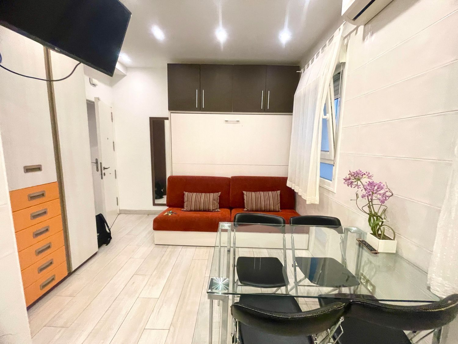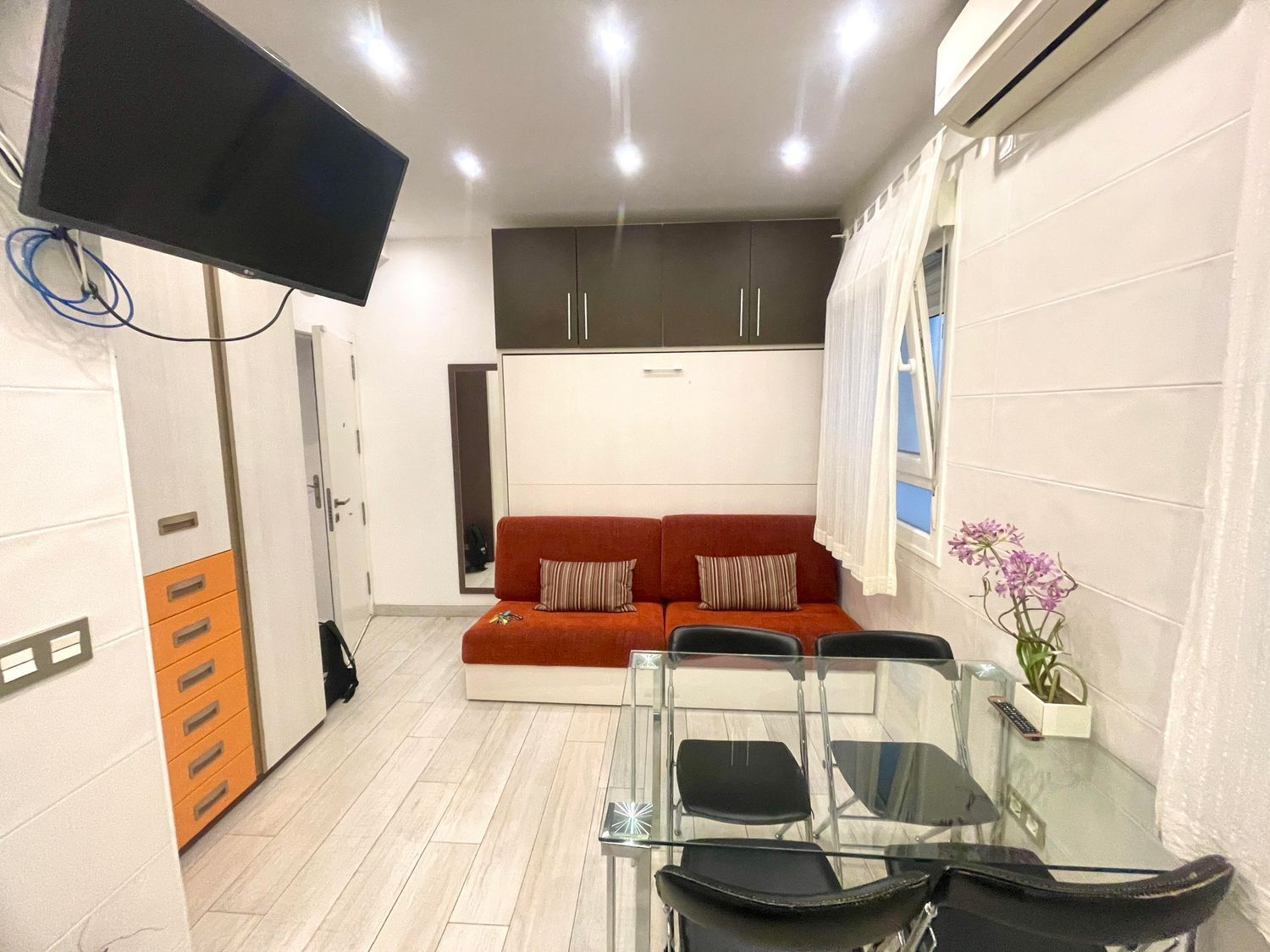 Impecable estudio, reformado, amueblado, 1 baño. Frío / calor. Tv, menaje, cama grande abatibles, cama abatible. Lavavajillas, lavadora-secadora, frigorífico, etc.