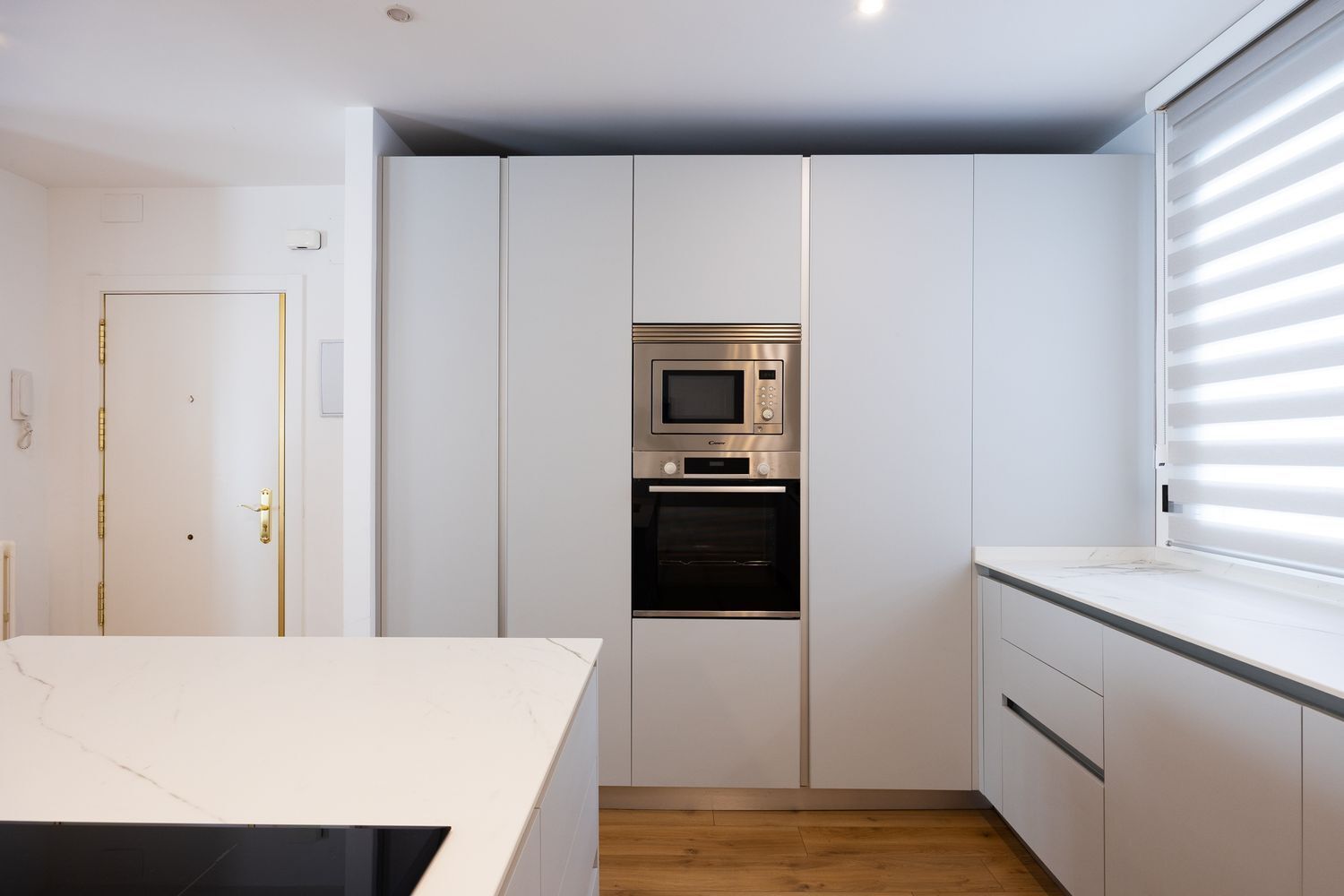 Además, encontrarás una zona de despacho que podría servir de zona de juegos. El salón da acceso a un balcón a la calle Gaztambide.