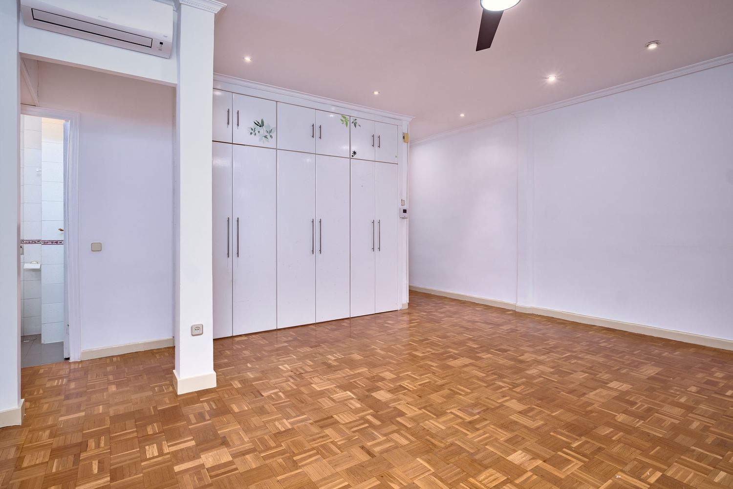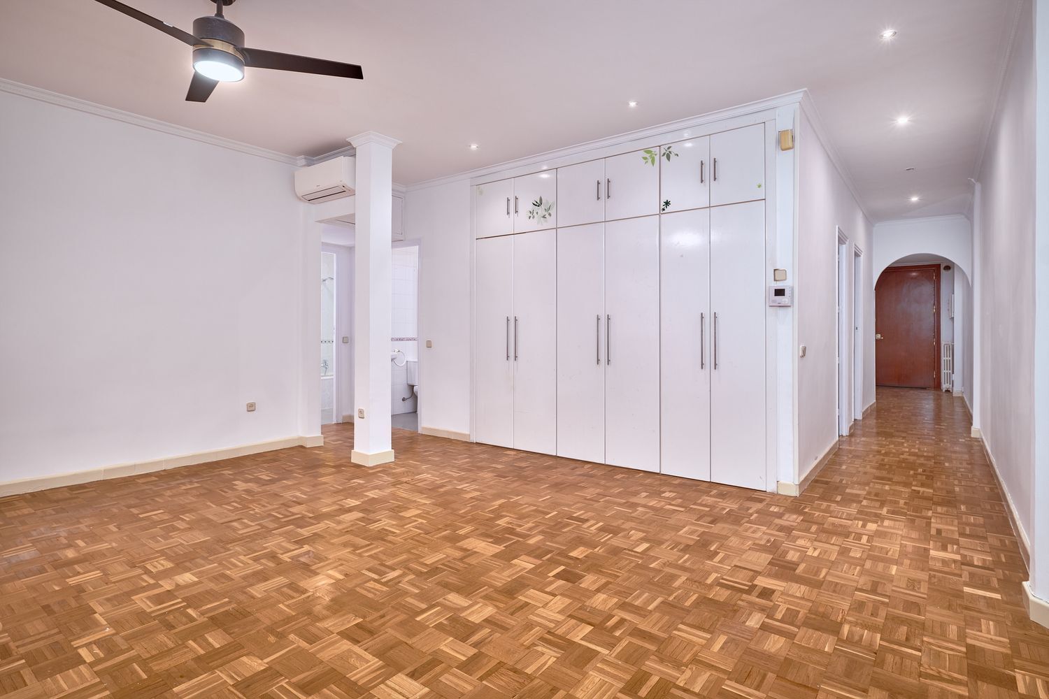 Aire acondicionado por splits de pared en salón y dos de los dormitorios y ventilador de techo en salón y uno de los dormitorios.