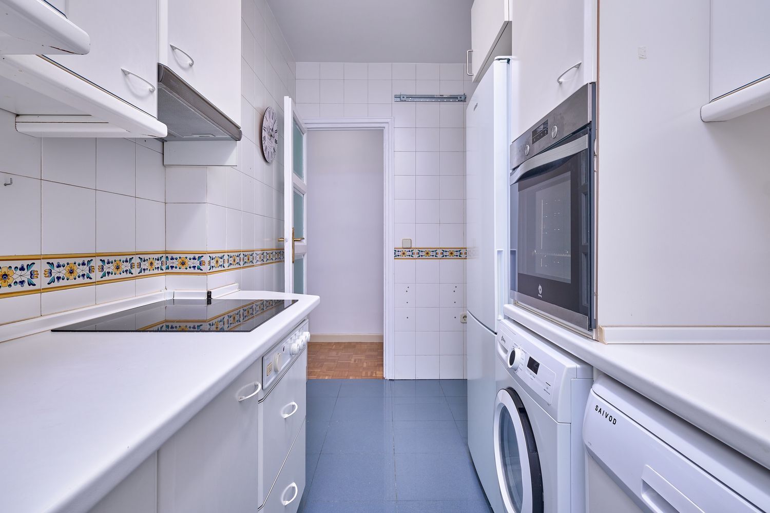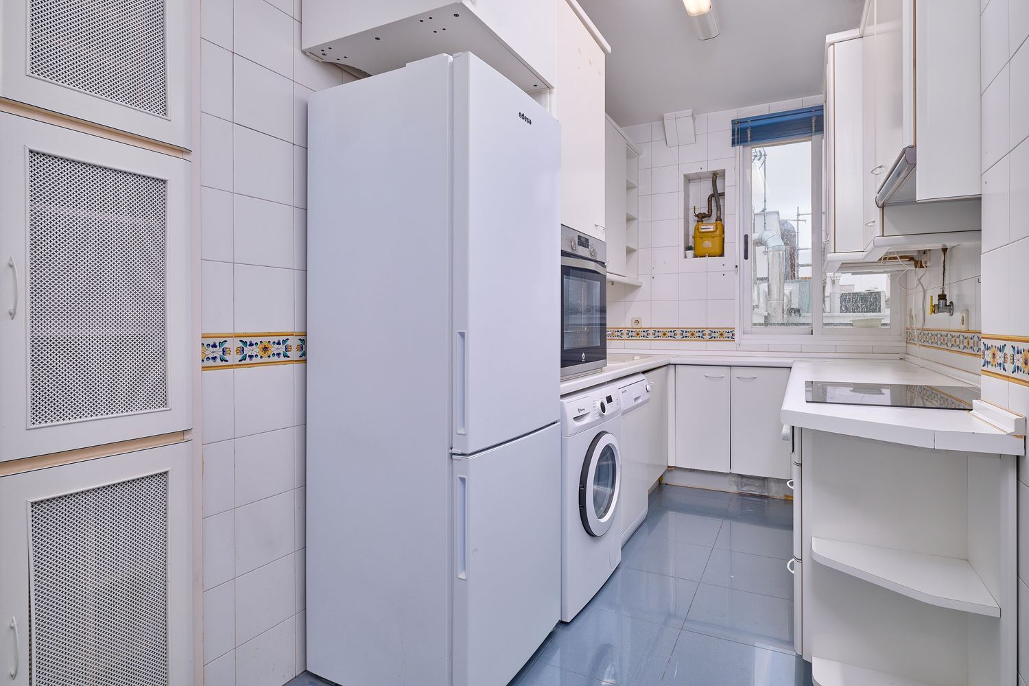 El piso ocupa una superficie útil de 91 m2 distribuidos en salón-comedor de 27 m2, dormitorio principal con habitación aneja que puede servir de vestidor o despacho, dos dormitorios, cocina equipada con lavadora, nevera, placa vitrocerámica de 3 fuegos, campana extractora y horno, baño principal con bañera y aseo de servicio con placa de ducha.