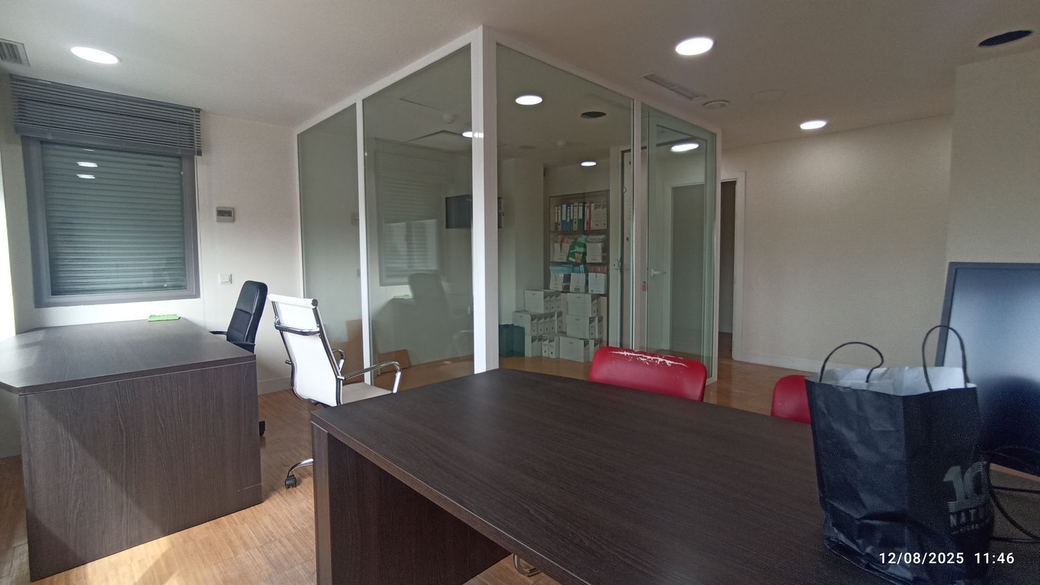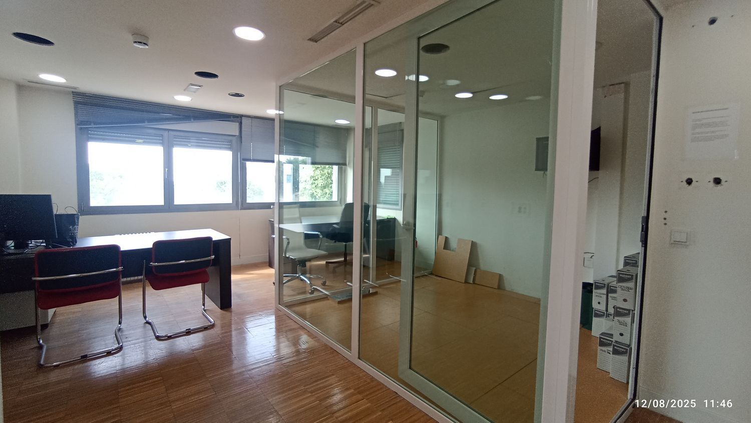 El edificio es accesible para personas con movilidad reducida y cuenta con un ascensor con capacidad para seis personas. También incluye dos plazas de estacionamiento, con opciones adicionales disponibles. La oficina tiene dos aseos en la zona común y la posibilidad de alquilar dos despachos adicionales en la planta superior, perfectos para reuniones o trabajo privado.